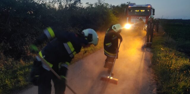 Am 29. August wurden wir kurz vor 20 Uhr zu einer Ölspur auf einen Feldweg alarmiert. Kurz nach dem Alarm rückten 15 Kamerad:innen mit 3 Fahrzeugen zum Einsatzort aus. Vor Ort konnte eine 160 Meter lange Hyraulikölspur, vermutlich aus einem weiterlesen FF Matzen – Ölspur wurde beseitigt→