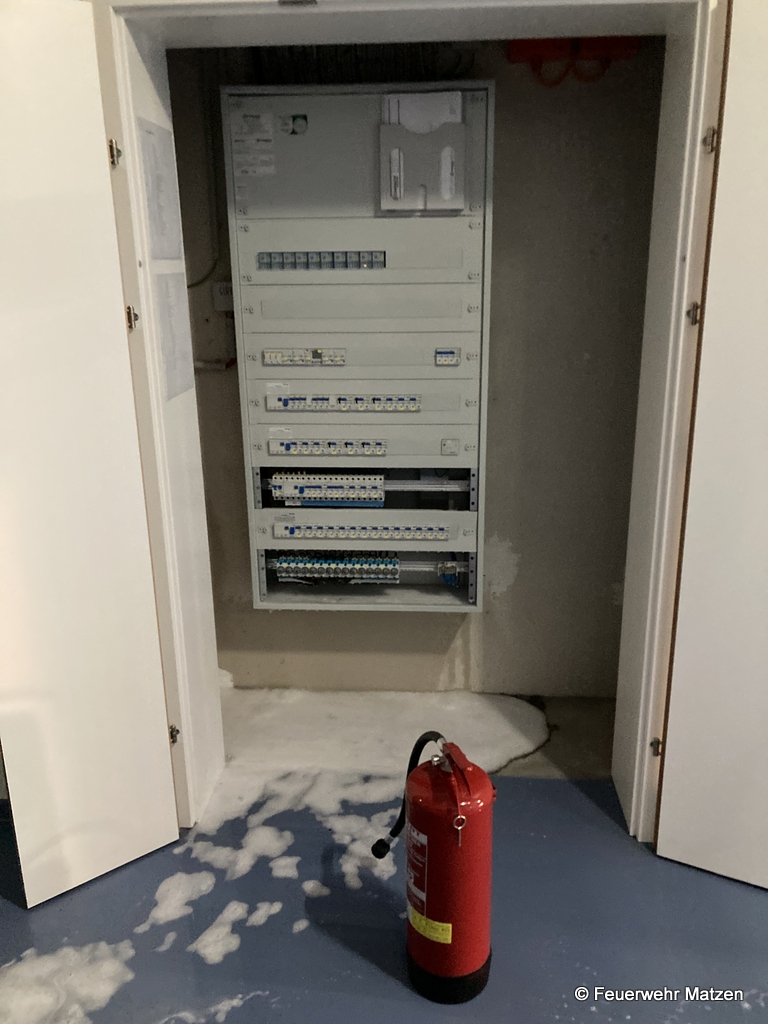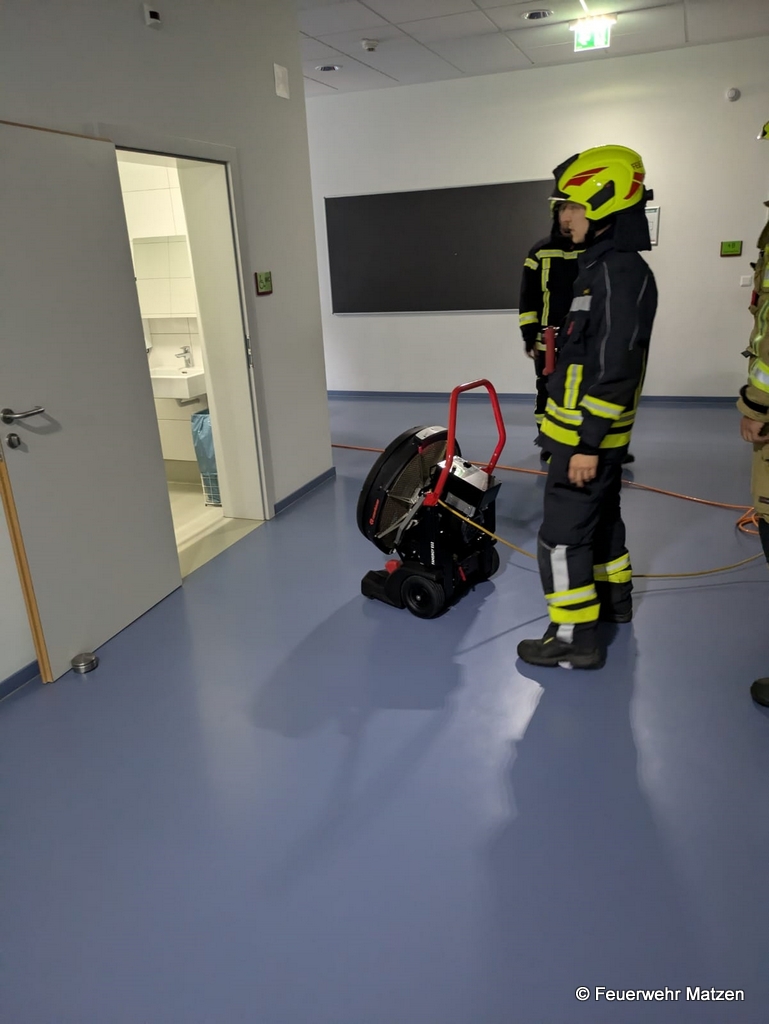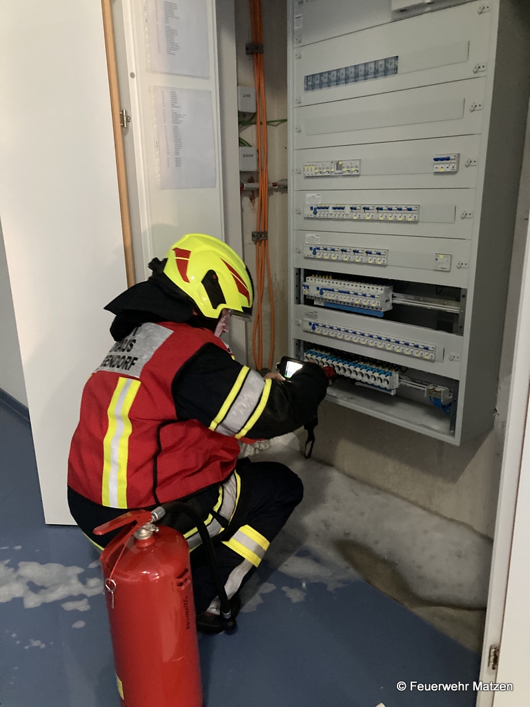 Vor Ort konnte festgestellt werden, dass der Elektrobrand bereits durch Ersthelfer mittels Feuerlöscher gelöscht wurde. Durch den Schulwart wurde der betroffene Bereich stromlos gemacht und mittels WBK (Wärmebildkamera) der FF Raggendorf der Brandbereich kontrolliert. Zeitgleich wurde der Druckbelüfter der FF Prottes in Stellung gebracht, um die leichte Rauchentwicklung sowie den Brandgeruch aus dem Objekt zu bekommen.