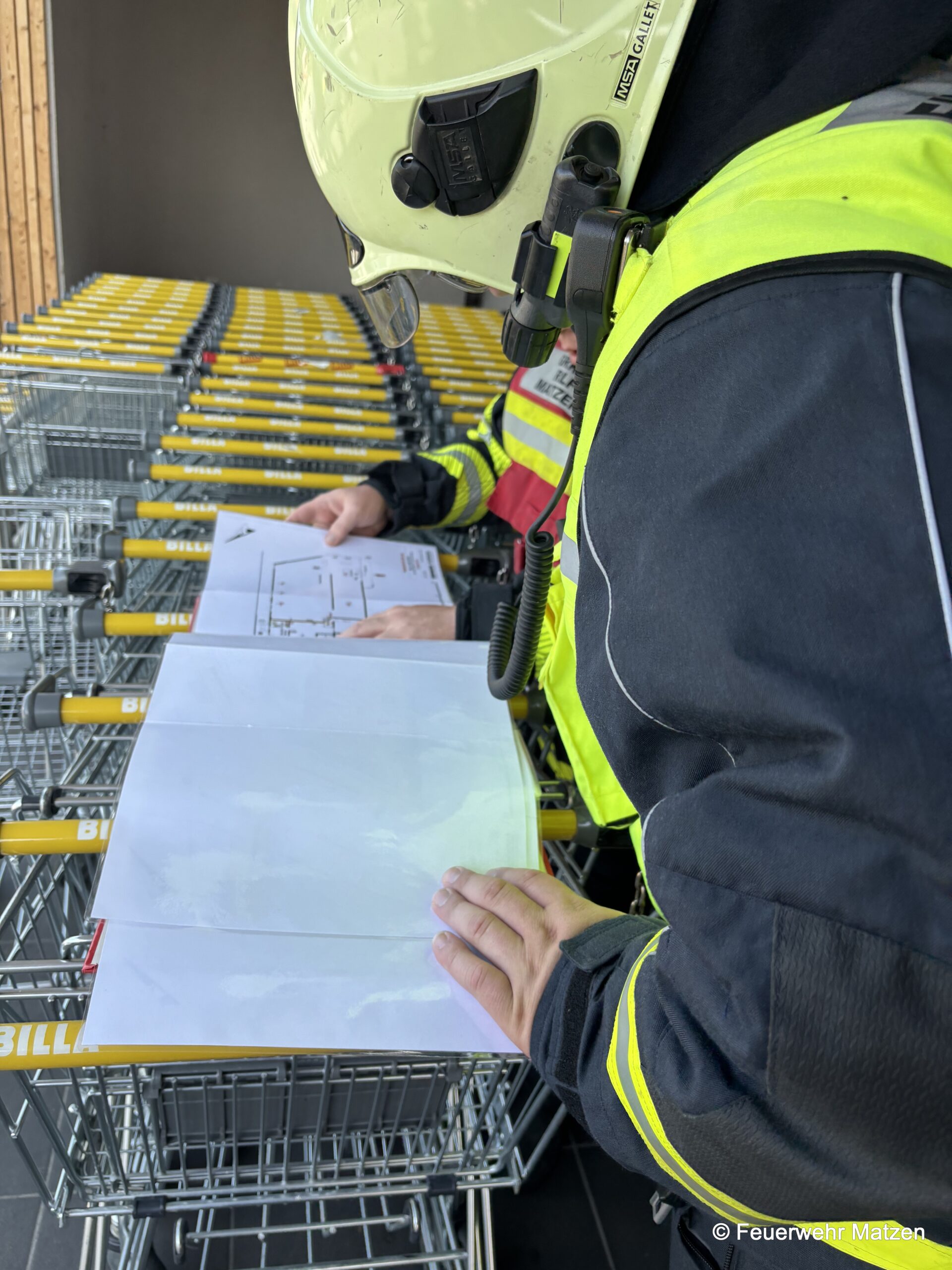 Vor Ort wurde das Objekt vom Einsatzleiter gemeinsam mit dem Marktleiter der Filiale kontrolliert. Ein Brand konnte nicht festgestellt werden.