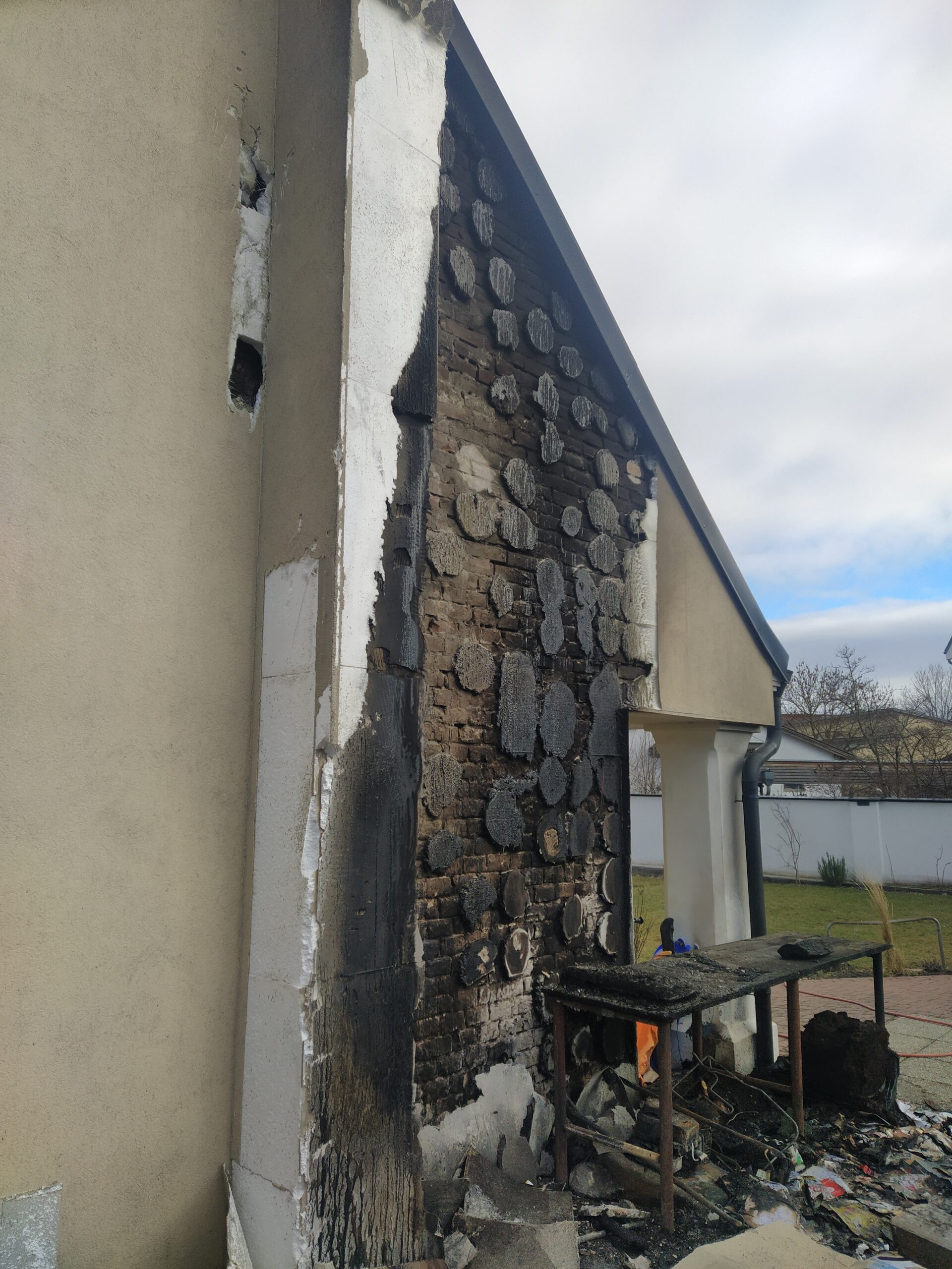 Zeitgleich wurde ein Atemschutztrupp mit Löschleitung und Wärmebildkamera zur Erkundung des Dachraumes beordert, welcher bereits nach wenigen Minuten Entwarnung geben konnte. Im Dachboden gab es keine Brandausbreitung oder Glutnester. Der wahrgenommene Brandgeruch dürfte vom Fassadenbrand stammen. Um eine mögliche Ausbreitung schnellstmöglich zu bemerken wurde am Dachboden über die gesamte Einsatzdauer ein Atemschutztrupp mit Wärmebildkamera positioniert.