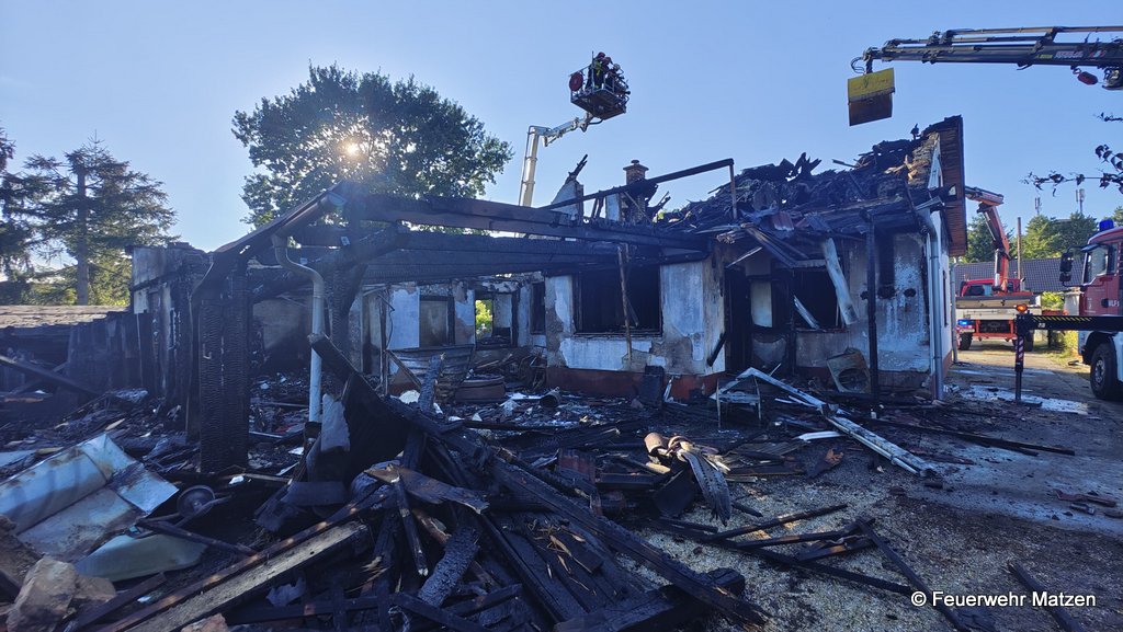 Gemeinsam konnten die Nachbarobjekte geschützt werden. Durch den massiven Kräfteeinsatz und dem Einsatz einer Drehleiter und einer Teleskopmastbühne konnte die Brandintensität rasch gebrochen werden. Die Nachlöscharbeiten und die Suche nach Glutnester gestaltete sich auf Grund der Bauweise des Hauses und der Einsturzgefahr als schwierig. Dafür wurde das Dach von Außen mittels zweier Schalengreifer abgetragen.