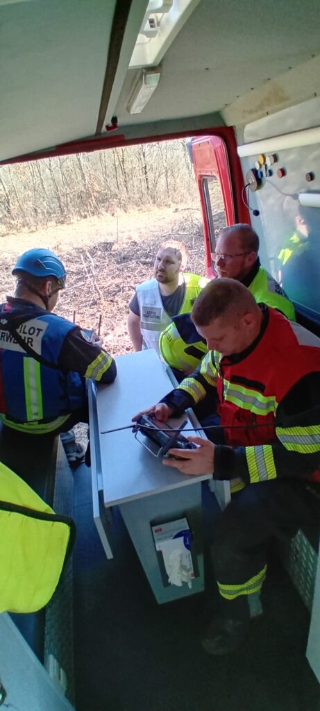 Am Einsatzort angekommen war der Brand glücklicherweise unter Kontrolle und großteils gelöscht. Das Drohnenteam führte Kontrollflüge durch und konnte mittels Wärmebildkamera die Nachlöscharbeiten unterstützen. Hierbei zeigte sich wieder eindrucksvoll welchen Mehrwert unsere Drohnen dem örtlichen Einsatzleiter bieten. Jedes verbleidende Glutnest konnte rasch aufgefunden und gezielt abgelöscht werden.