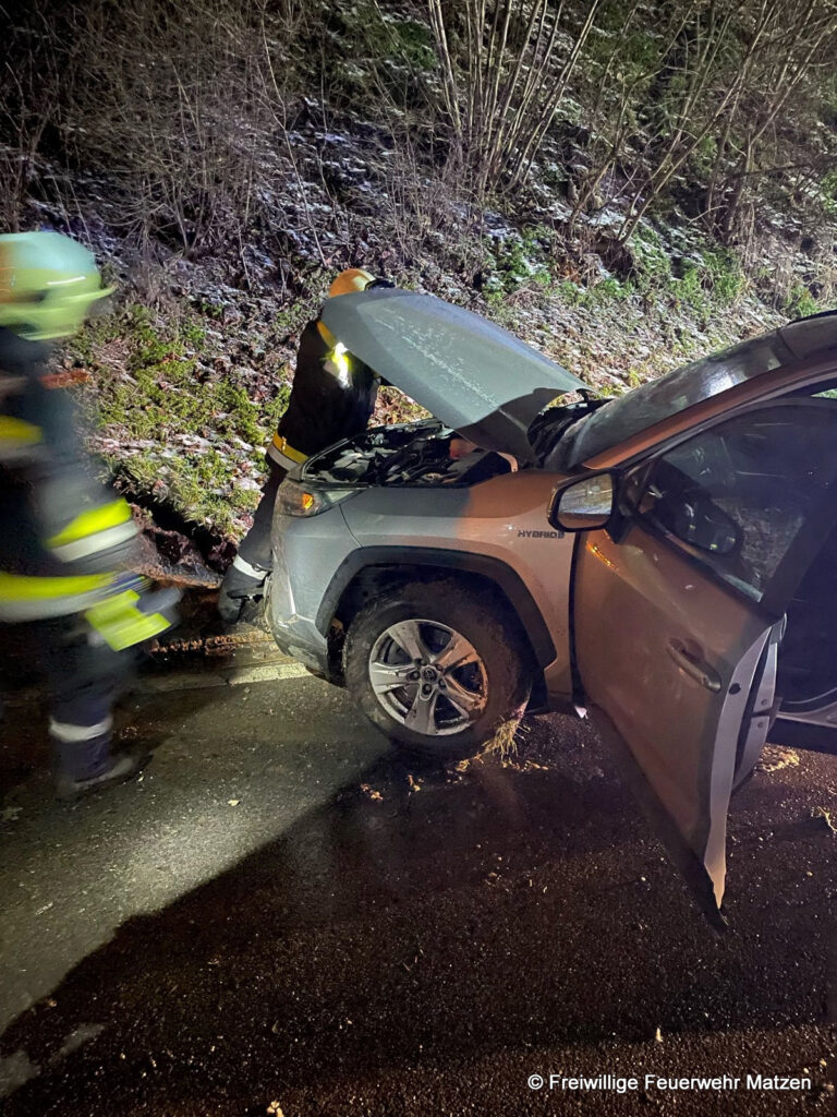 Durch den Einsatzleiter LM Christoph Wetska konnte am Einsatzort festgestellt werden, dass ein PKW von Spannberg Richtung Matzen fahrend ins Schleudern gekommen war, auf der linken Straßenseite einen Gartenzaun beschädigte bevor das Fahrzeug auf der rechten Straßenseite mit der Böschung am Fahrbahnrand kollidierte.Glücklicherweise war kein Beteiligter verletzt worden. Die Feuerwehr Matzen sicherte unverzüglich die Einsatzstelle ab und baute den Brandschutz auf. Während die Exekutivbeamten noch bei der Unfallaufnahme waren, wurden seitens unserer Feuerwehr bereits die notwendigen Vorkehrungen zum Abtransport getroffen und die Verkehrsflächen für die Benutzung gereinigt und vorbereitet.