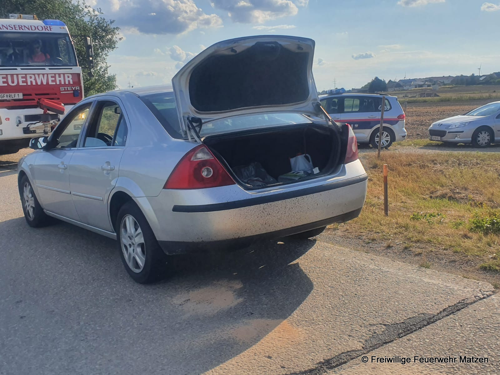 Am Unglücksort stellte sich heraus, dass ein schadhafter PKW über eine weite Strecke Öl verloren hatte – beginnend auf der Reyersdorfer Straße, in der Umgebung der Fa. Billa und der Verkehrsinsel in Matzen und dann schließlich Richtung Kreisverkehr auf der L 3519 bevor er von der Polizei gestoppt werden konnte.