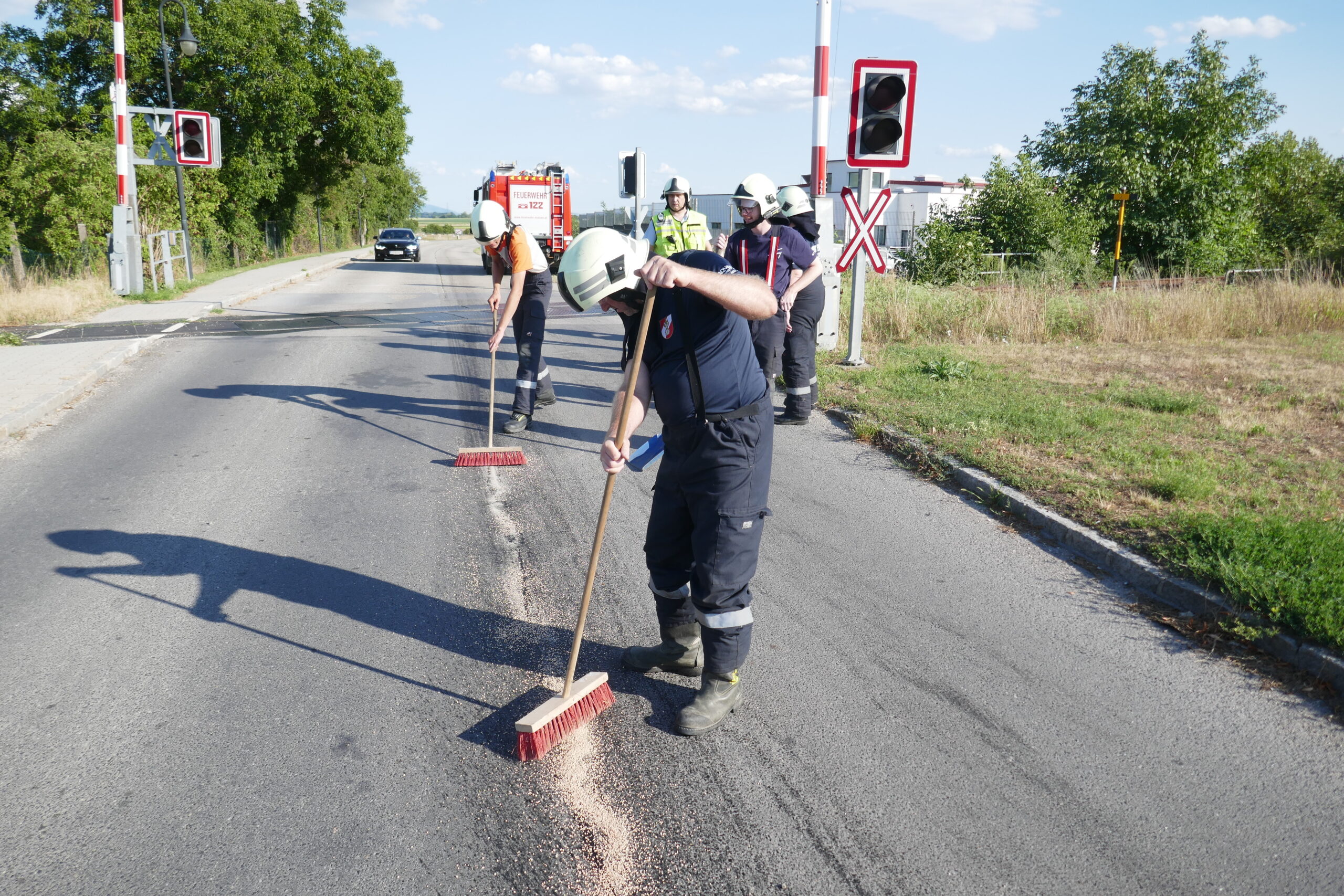 FF Matzen – Schadstoffaustritt: Große Ölspur wurde beseitigt