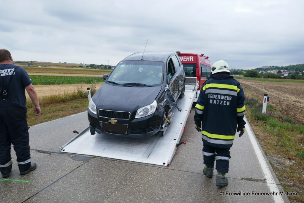 Am Unglücksort stellte sich heraus, dass zwei Pkws in einem Kurvenbereich mittig zusammengestoßen waren. Im ersten PKW wurden zwei Personen verletzt vorgefunden. Beim zweiten PKW war aufgrund des Aufpralls die linke Vorderachse herausgerissen und das Fahrzeug wurde im Ackerbereich vorgefunden. Im Fahrzeug hat sich eine Person befunden, welche augenscheinlich unverletzt geblieben war.