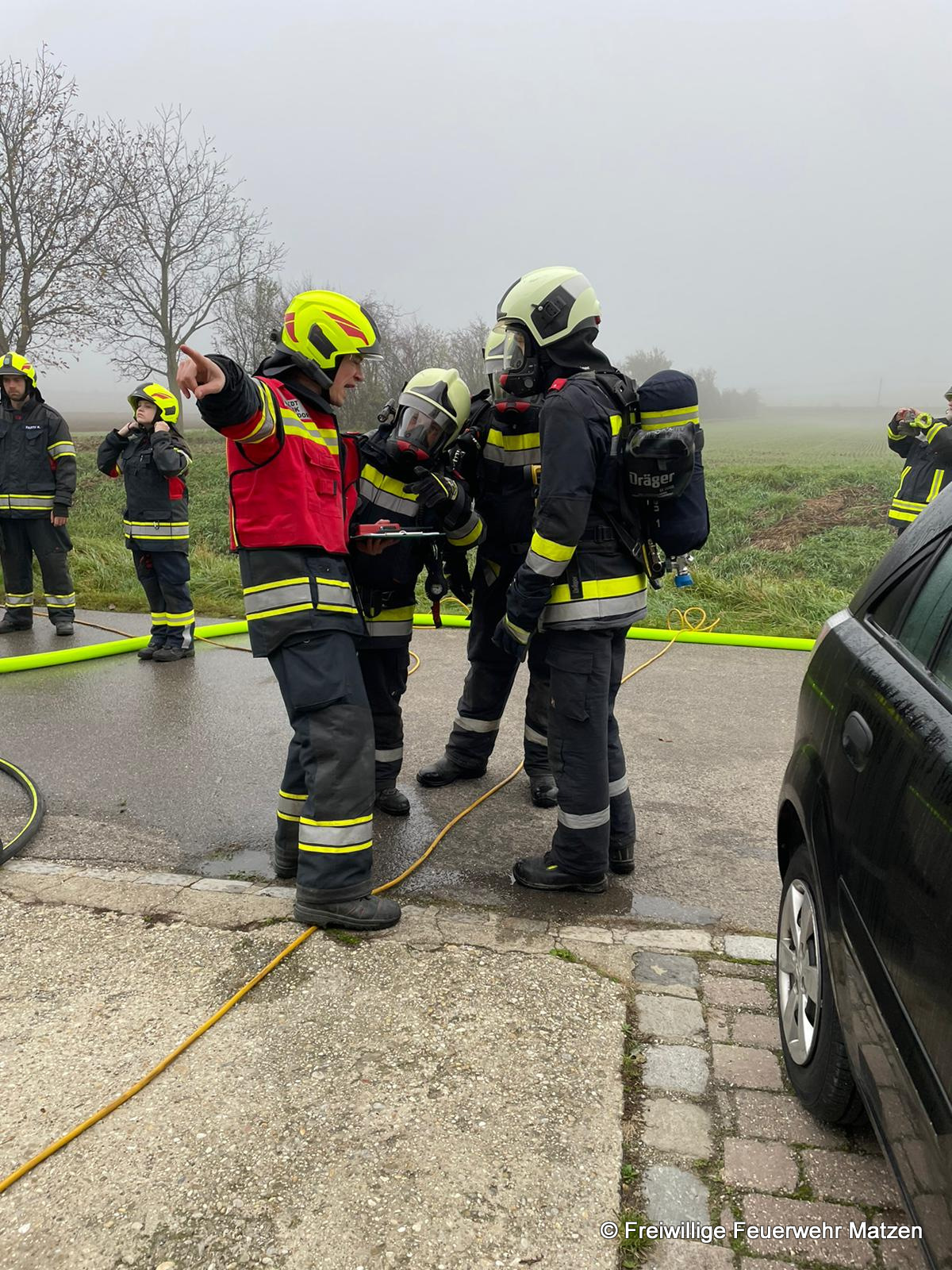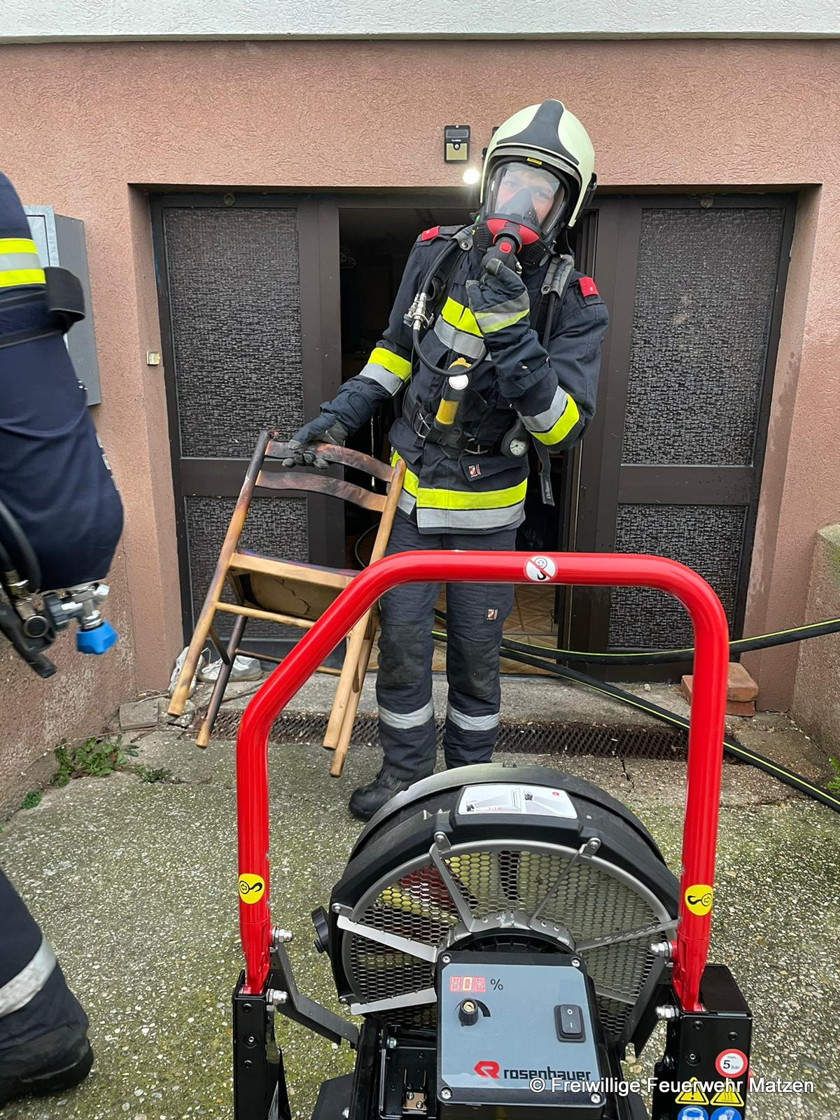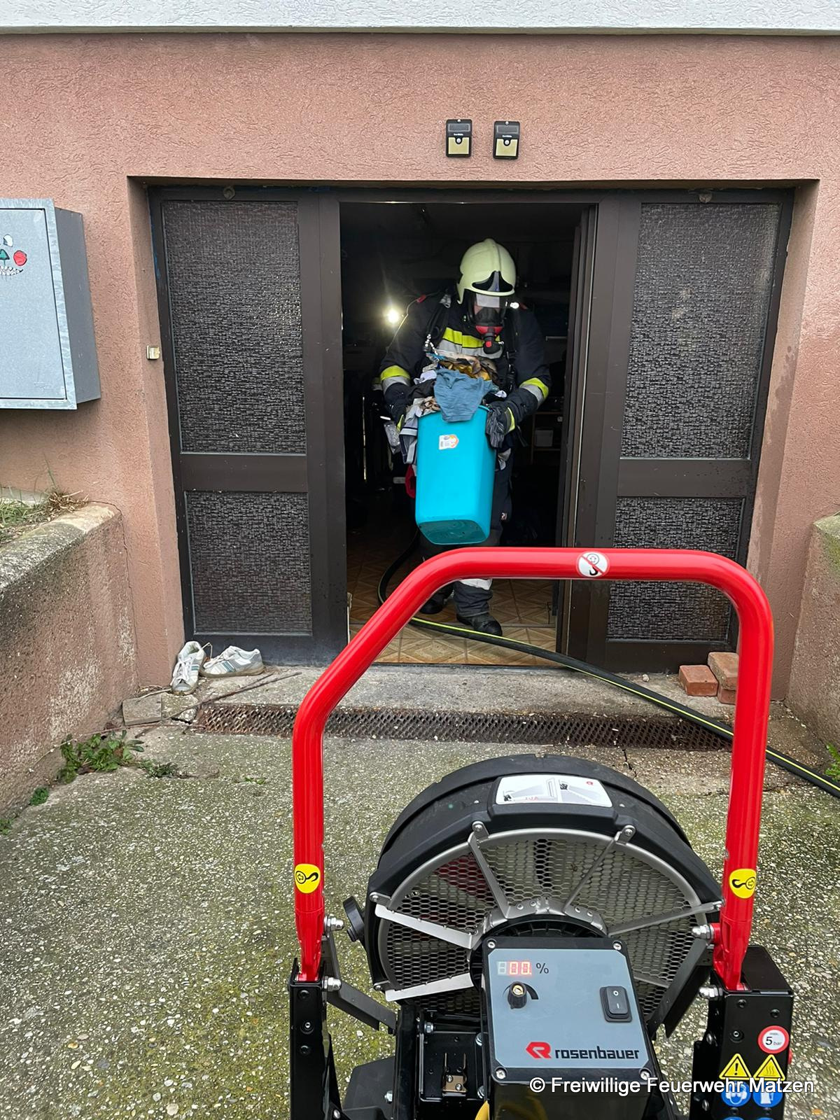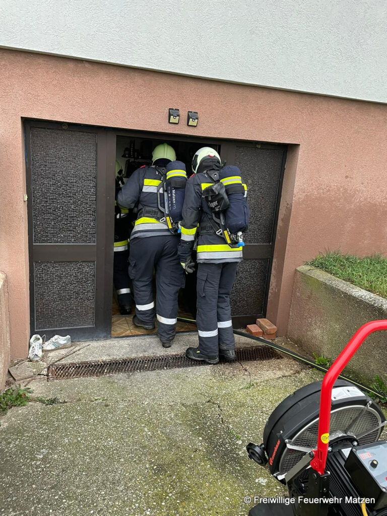 Bei Eintreffen der FF Matzen war bereits ein Atemschutztrupp der FF Raggendorf im Kellerbereich am Einsatzort im Einsatz. Von der FF Matzen wurde sofort ein zweiter Atemschutztrupp eingeteilt, der dann auch unter Verwendung einer Wärmebildkamera sofort zu Einsatz kam.