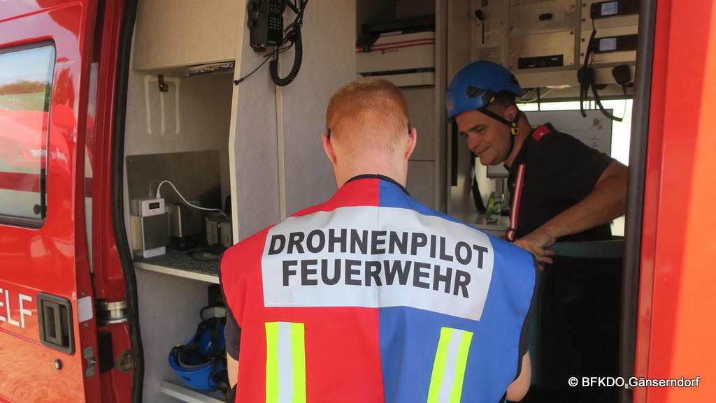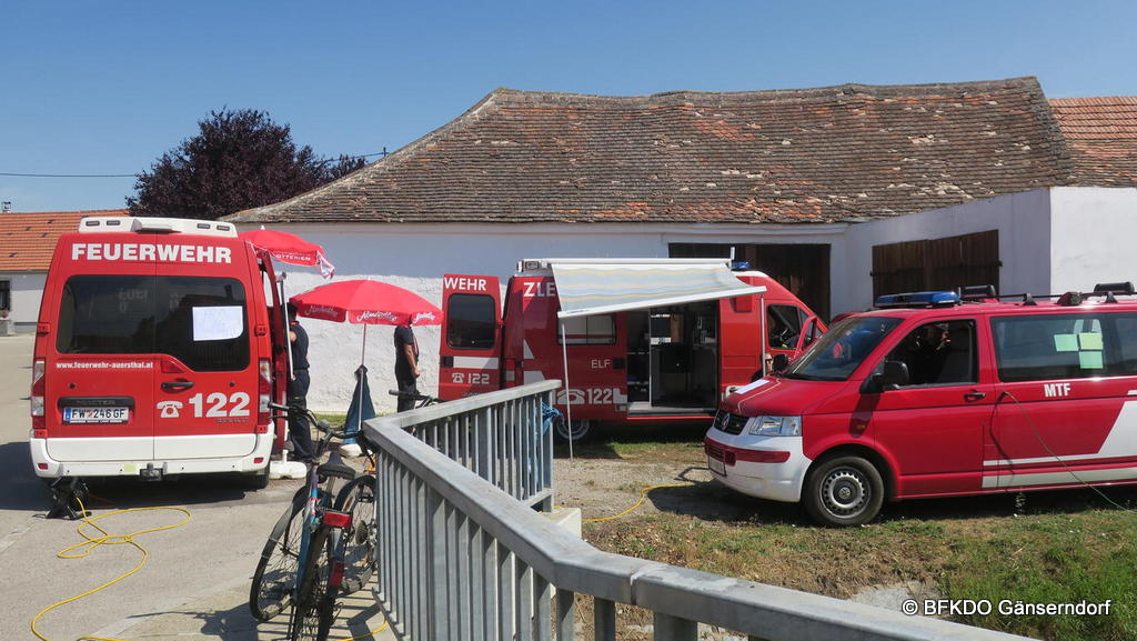 Auch die Kameraden der Feuerwehr Matzen als Besatzung des ELF samt Drohnenausrüstung wurden am 28. Juni zur Unterstützung des KHD angefordert. Nach dem Treffpunkt um ca. 8:00 Uhr beim Hofer Einkaufsmarkt in Poysdorf und ersten Informationen fuhr ein Konvoi aus Feuerwehrfahrzeugen geschlossen nach Schrattenberg.