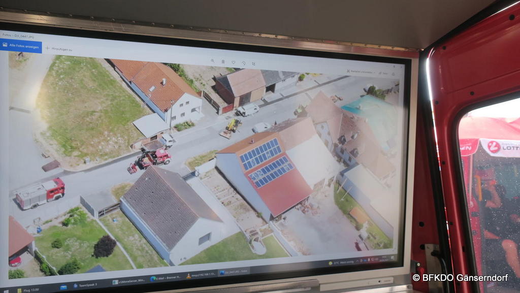 Es war nicht mehr nötig, die beschädigten Dächer zur Begutachtung persönlich zu besteigen und wurde hiermit Verletzungsrisiko für jeden einzelnen Feuerwehrmann minimiert. Gleichzeitig konnte sich die Einsatzleitung schneller vom Fortschritt der Sanierungsmaßnahmen überzeugen und war es auch präziser möglich, auf auftauchende Schwierigkeiten zu reagieren.