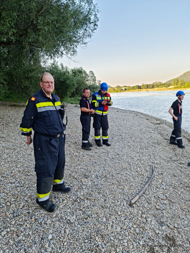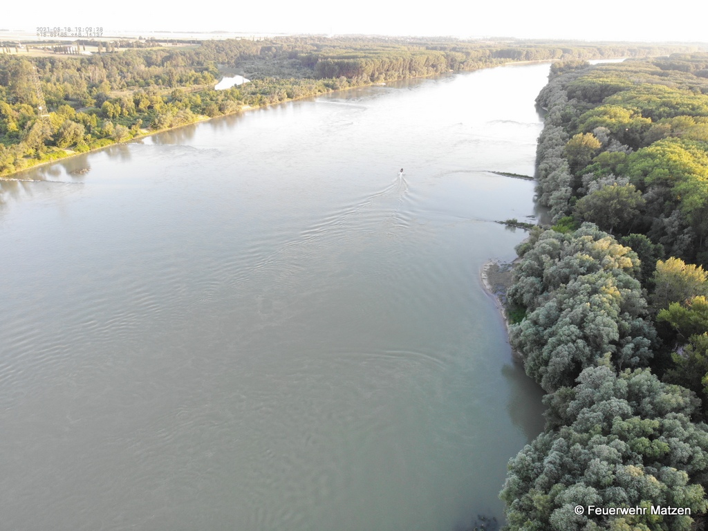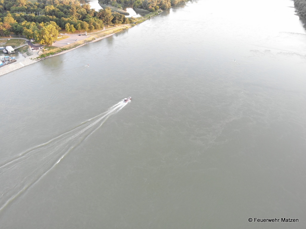 Seitens der Drohne wurden das linke Donauufer ca. 500 Meter stromaufwärs und ca. 700 Meter stromabwärts beflogen. Leider konnte von der vermissten Person kein Lebenszeichen gefunden werden.