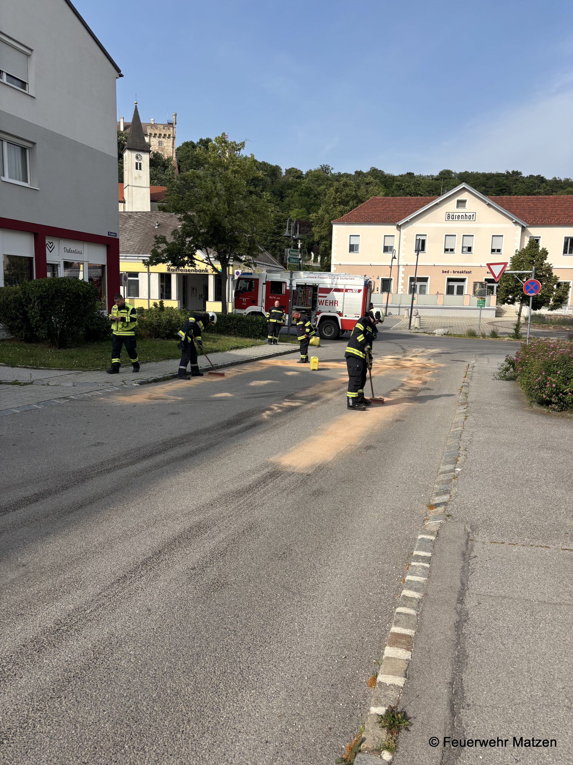 Am späten Nachmittag des 10. Juni wurden die Kameraden der FF Matzen zu einem Schadstoffeinsatz am Hauptplatz alarmiert. Wenig später rückten sieben Mitglieder zur Einsatzadresse aus.