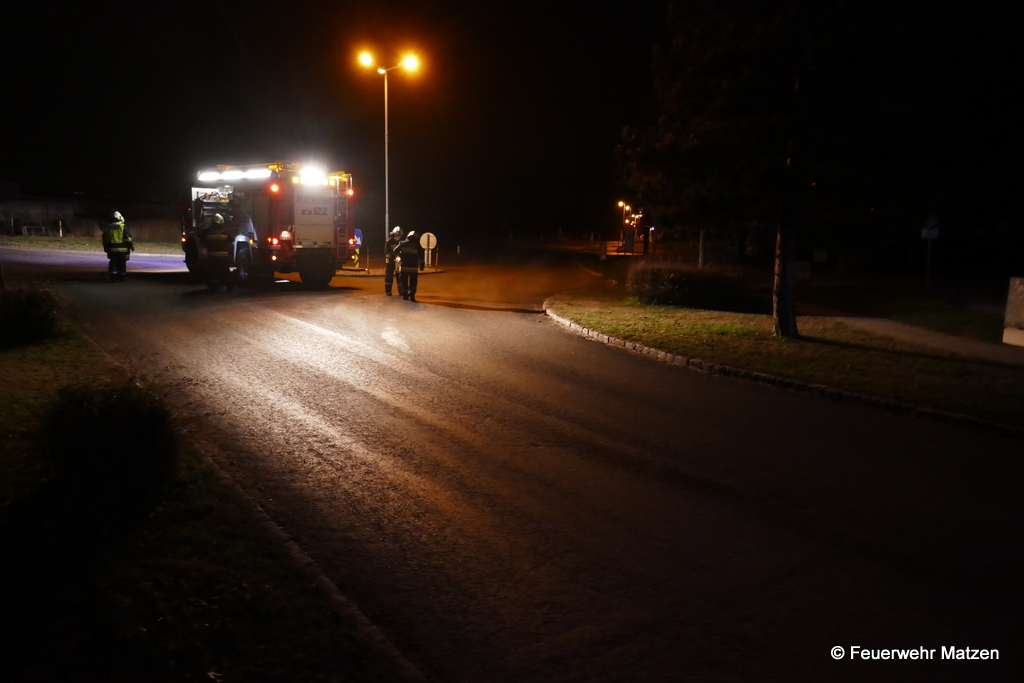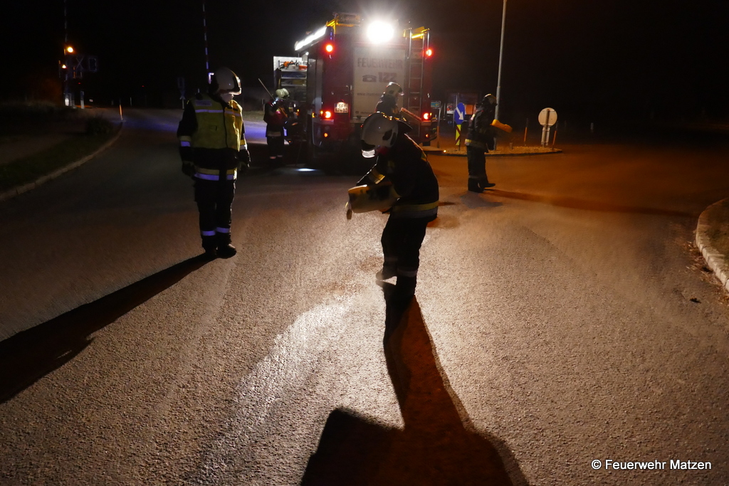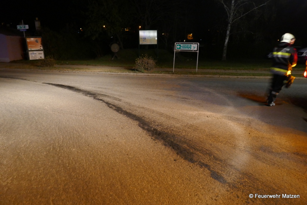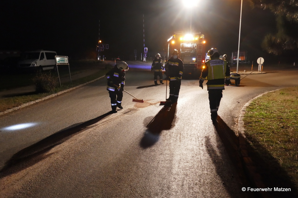 Am Abend des 25. Novembers 2020 wurde die Feuerwehr Matzen zu einer Ölspur auf der Reyersdorferstraße alarmiert. Ein Kamerad entdeckte am Nachhauseweg Betriebsmittel auf der Fahrbahn und ließ um 21:03 Uhr den stillen Alarm über die Alarmzentrale auslösen. Da Aufgrund der derzeitigen Covid-Situation bei nichtzeitkritischen Einsätze nur eine Kleingruppe alarmiert wird, rückte kurz nach der Alarmierung 7 Mann zur Einsatzadresse aus. Mittels Bindemittel wurde das ausgelaufene Diesel-Ölgemisch gebunden. Nach der Reinigung der Verkehrsflächen konnten die Florianijünger nach rund 30 Minuten wieder abrücken.