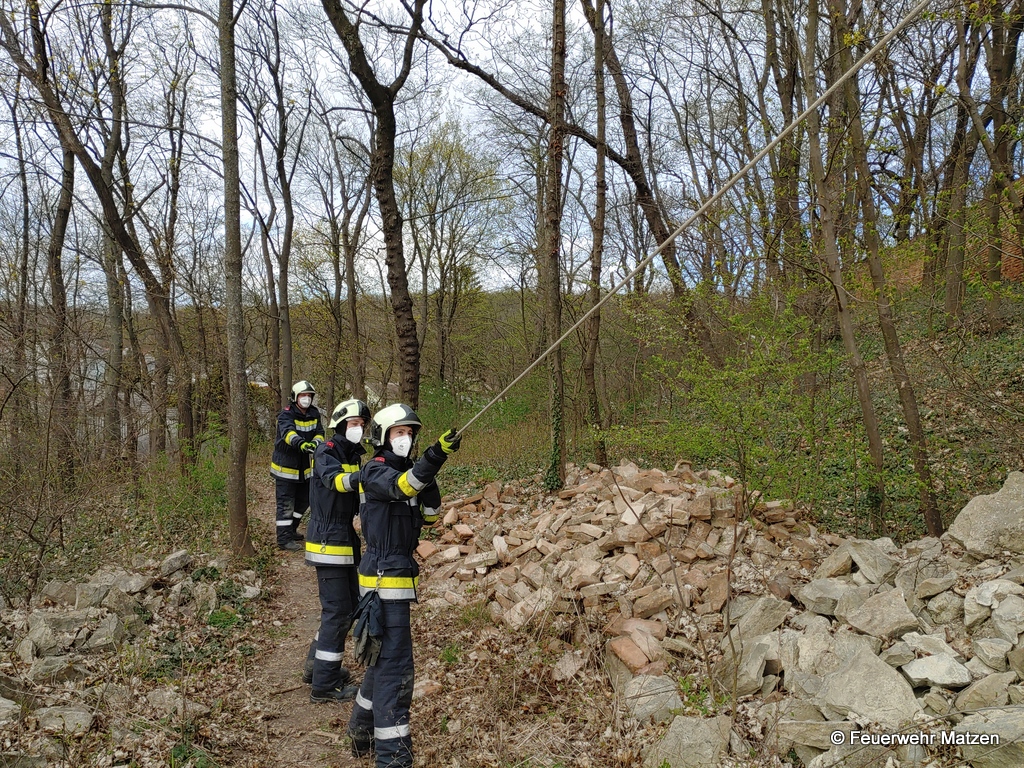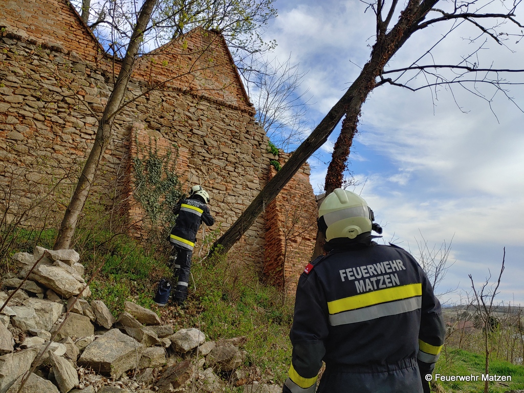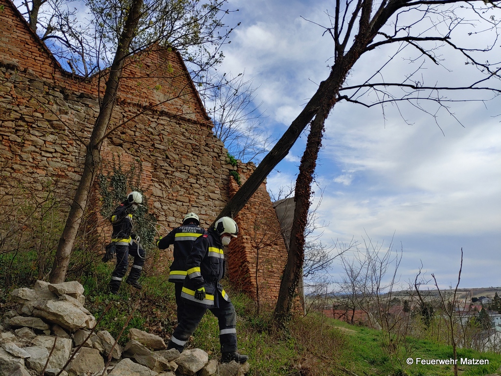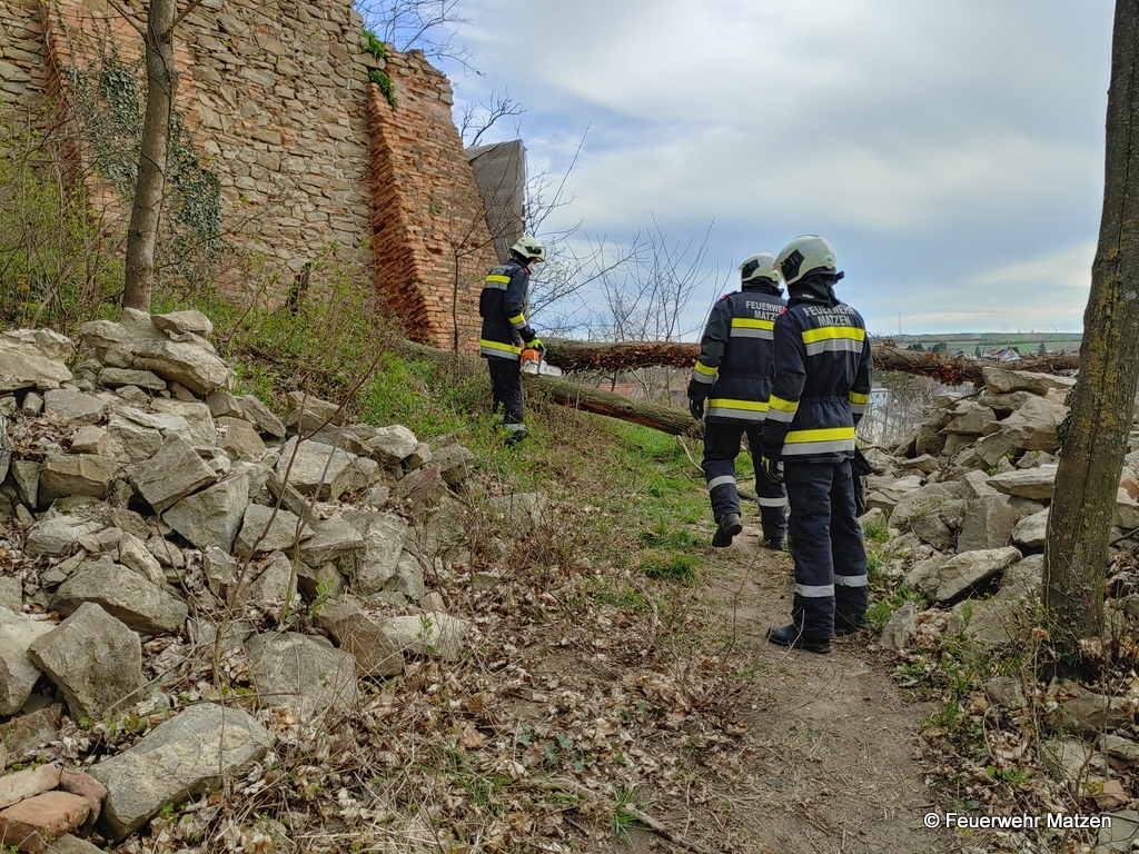 Am 11. April 2021 wurde die Feuerwehr Matzen gegen 16:00 Uhr telefonisch über einen Sturmeinsatz informiert. Ein besorgter Bürger meldete am Nachbarsgrundstück einen lauten Knall. Bei der Nachsicht entdeckte er einen entwurzelten Baum der in einer Baumkrone hängen blieb. Unverzüglich rückten 5 Mann mit dem Rüstlöschfahrzeug zur Einsatzadresse aus. Nachdem der instabile Baum mittels Arbeitsleine gesichert wurde, konnte der zweite Baum gefahrlos gefällt werden. Nachdem die Gefahren für das Nachbarsgrundstück abgewendet wurden, konnten die Einsatzkräfte nach rund 30 Minuten wieder abrücken.