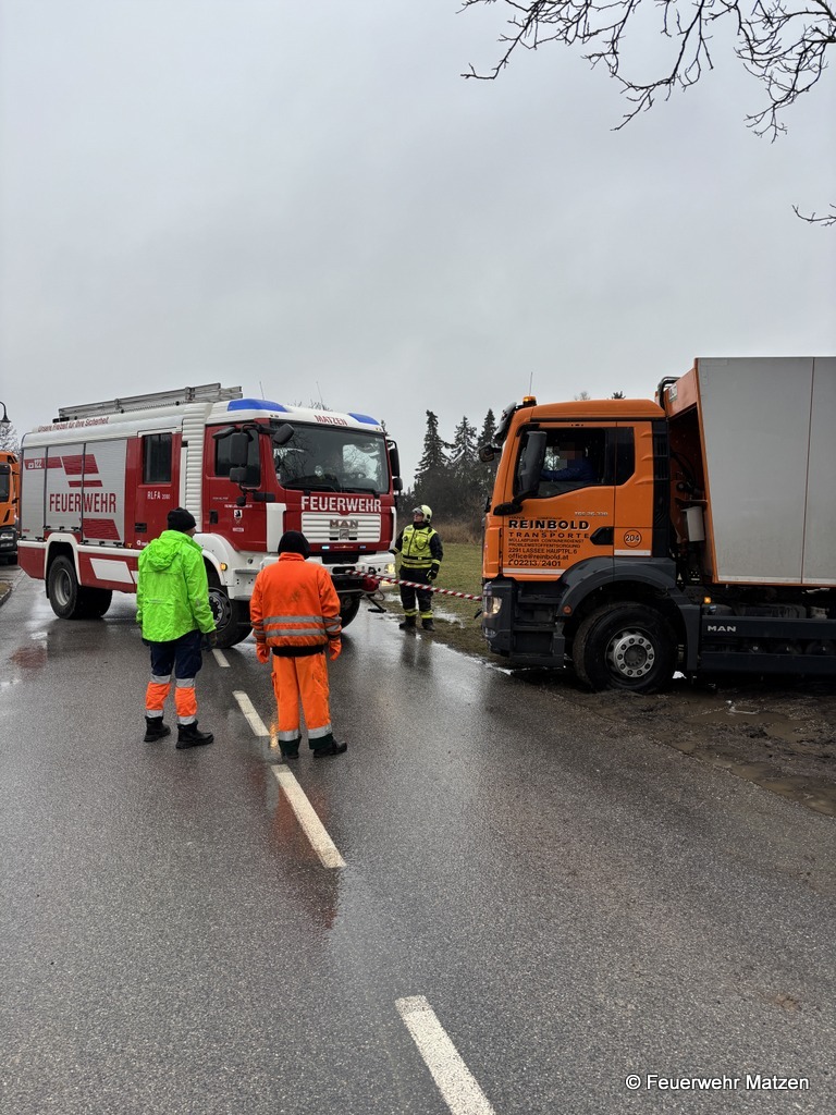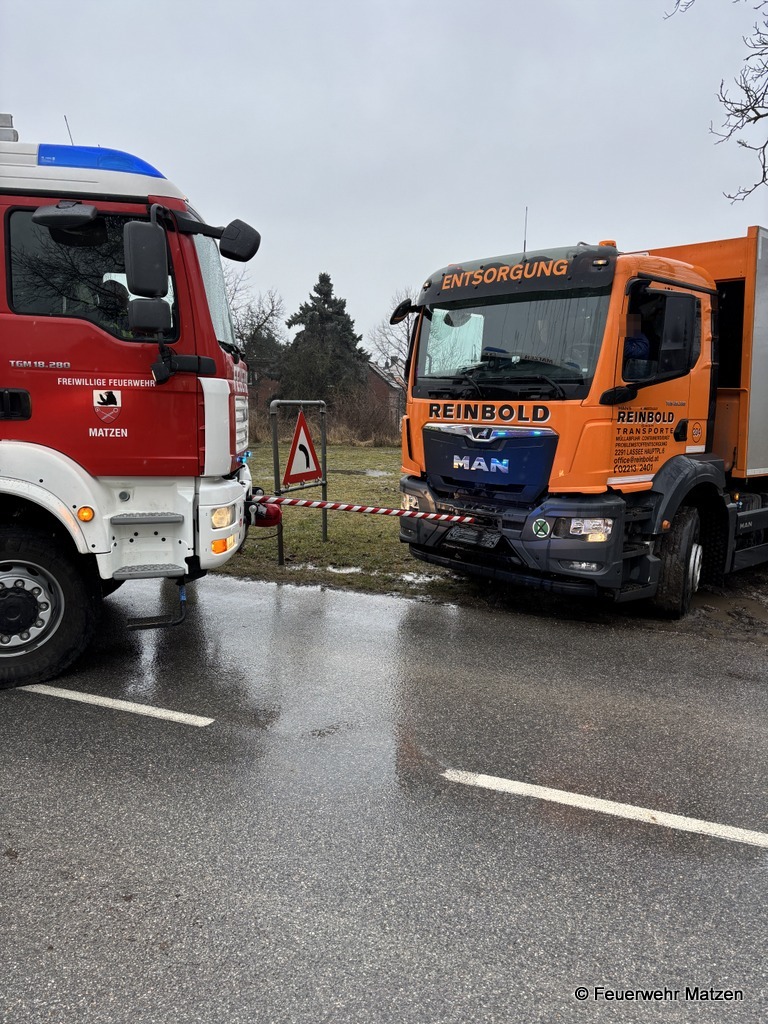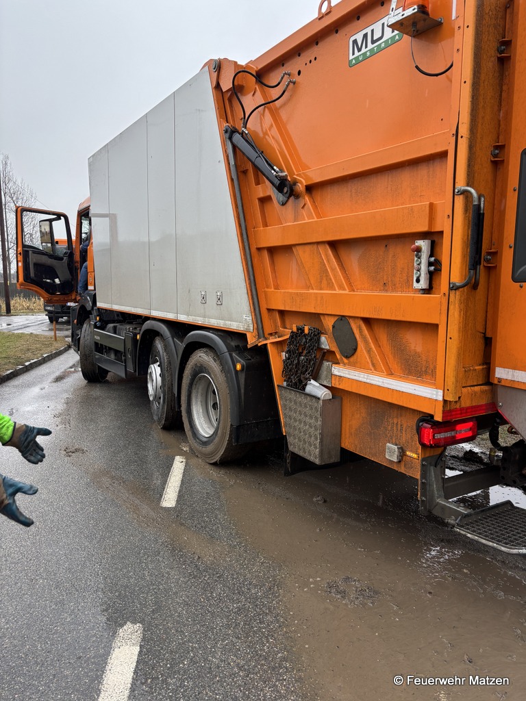 Ein Müllauto hatte sich auf der Grünfläche gegenüber unseres Feuerwehrhauses festgefahren und konnte sich nicht mehr aus eigener Kraft befreien. Nachdem der nachkommende Verkehr abgesichert war wurde mittels Abschleppstange der LKW aus seiner Misslichen Lage befreit. Im Anschluss wurden die Reifen des Müllautos und anschließend die Fahrbahn grob von Verschmutzungen gereinigt.