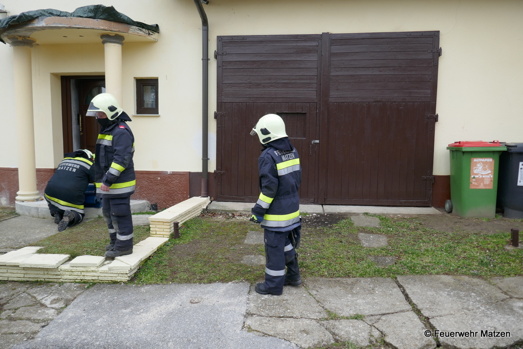 Eine besorgte Katzenbesitzerin meldete dem Notruf eine blockierte Eingangstüre. Die Feuerwehr Matzen wurde darauf mittels Stillem Alarm am 27. Februar 2021 um 14:56 Uhr zu einer Technischen Hilfeleistung alarmiert. Unverzüglich rückten 6 Mann aus der COVID Einsatzgruppe, diese minimierte Gruppe wird bei nicht zeitkritischen Einsätze alarmiert, mit dem Rüstlöschfahrzeug zur Einsatzadresse aus. Bei der Erkundung wurde den Einsatzkräften die Lage folgend dargestellt. Eine Decke hätte sich direkt hinter der Türe an einem kleinen Sockel verkeilt, sodass sich die Türe nur einen kleinen Spalt öffnen ließ. Mittels Fingerspitzengefühl und Kleinwerkzeug konnte die Decke entfern werden. Nach rund 15 Minuten konnte der Einsatz erfolgreich beendet werden.