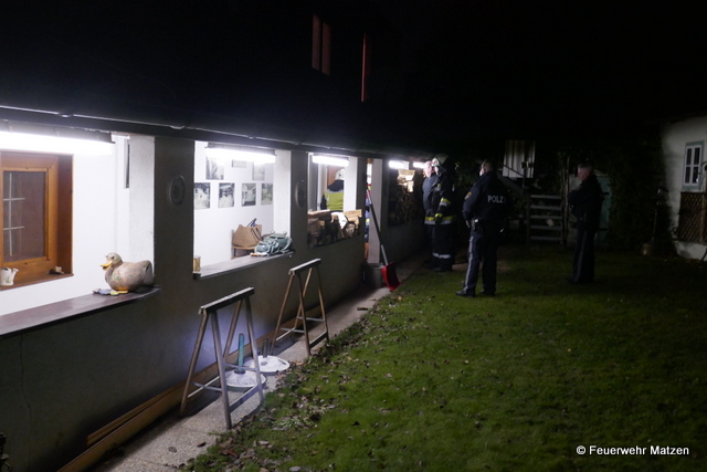 Der Zugang zur verunfallten Person wurde für die anwesenden Einsatzkräfte von Feuerwehr und Polizei zusätzlich durch eine versperrte Eingangstür erschwert, bei welcher der Türschlüssel auf der Innenseite angesteckt war. Eine Aufsperrmöglichkeit war somit nicht möglich Weil eine Gefahr für Menschenleben bestand, wurde von der Einsatzleitung der Feuerwehr eine Türöffnung mittels Brecheisen und Halligan Tool angeordnet. Bis zum Eintreffen der bereits alarmierten Rettungskräfte wurde für die verletzte Person sofort eine Erstversorgung durch den anwesenden Sanitäter der Feuerwehr gewährleistet. Hierbei wurden alle geltenden COVID-19-Vorschriften und Maßnahmen genauestens eingehalten.