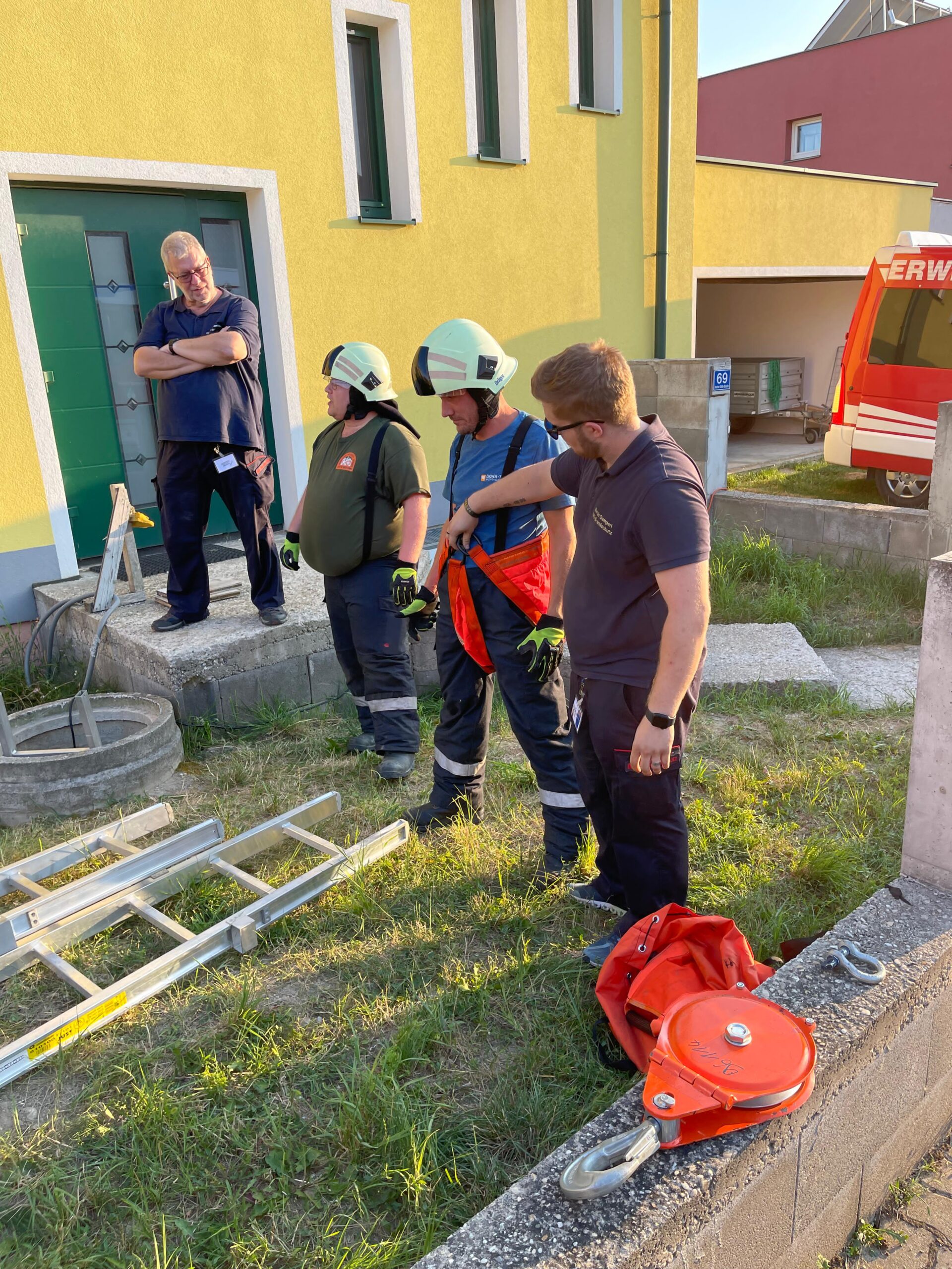 An einem der heißesten Tage im Jahr mit über 30°C wurde die Monatsübung Juli am Montag dem 15. abgehalten. Unter dem Moto „Retten aus Höhen und Tiefen“ trafen sich trotz Urlaubszeit einige Mitglieder, um diese interessante und für uns doch eher seltene Einsatzform zu Üben.