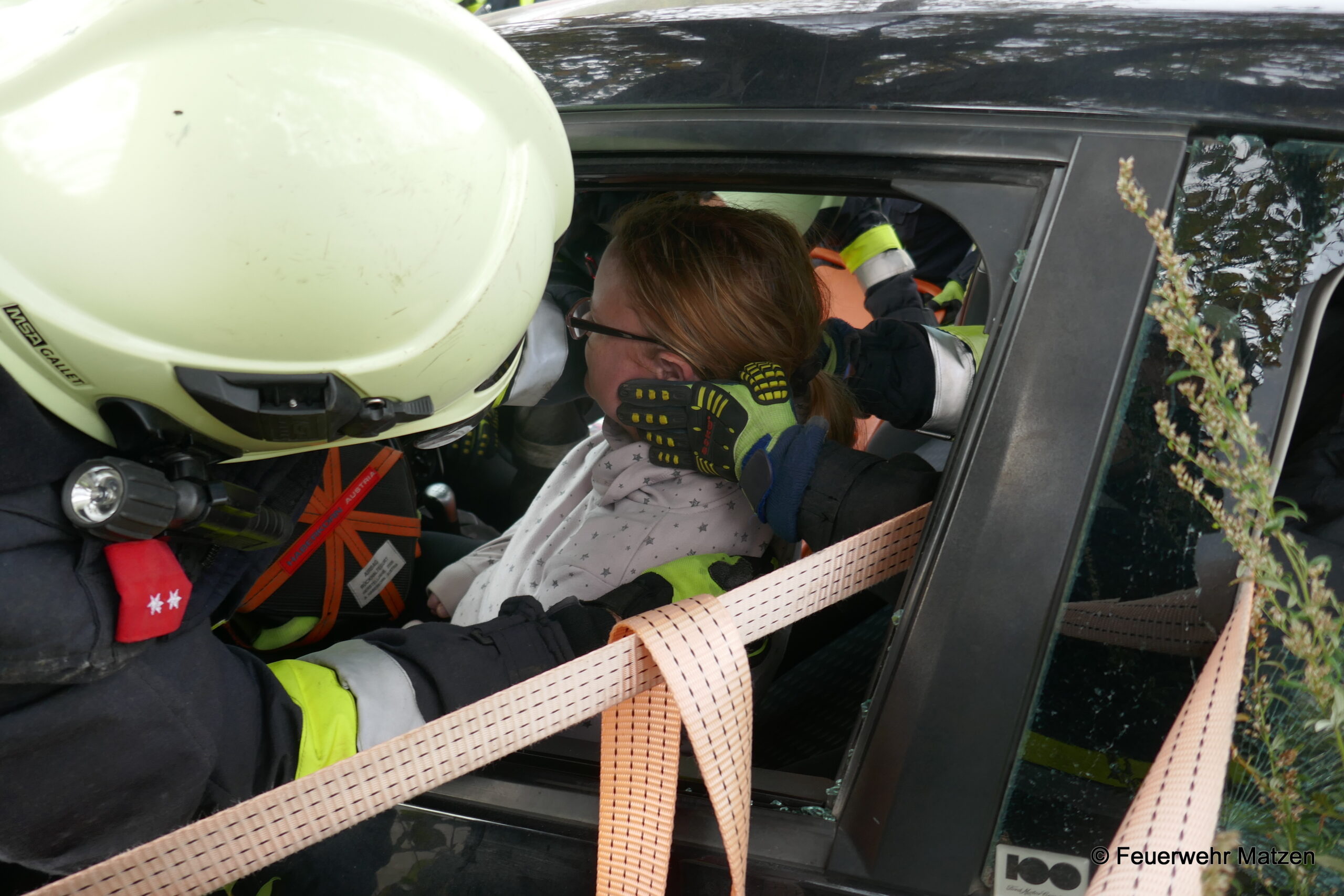 Nach der Erkundung wurde mit der Betreuung der Verletzen begonnen, ein doppelter Brandschutz aufgebaut und alles für die Technische Menschenrettung vorbereitet. Nachdem das Fahrzeug ausreichend abgesichert wurde, wurde mittels Hydraulischem Spreitzer die Menschenrettung begonnen.