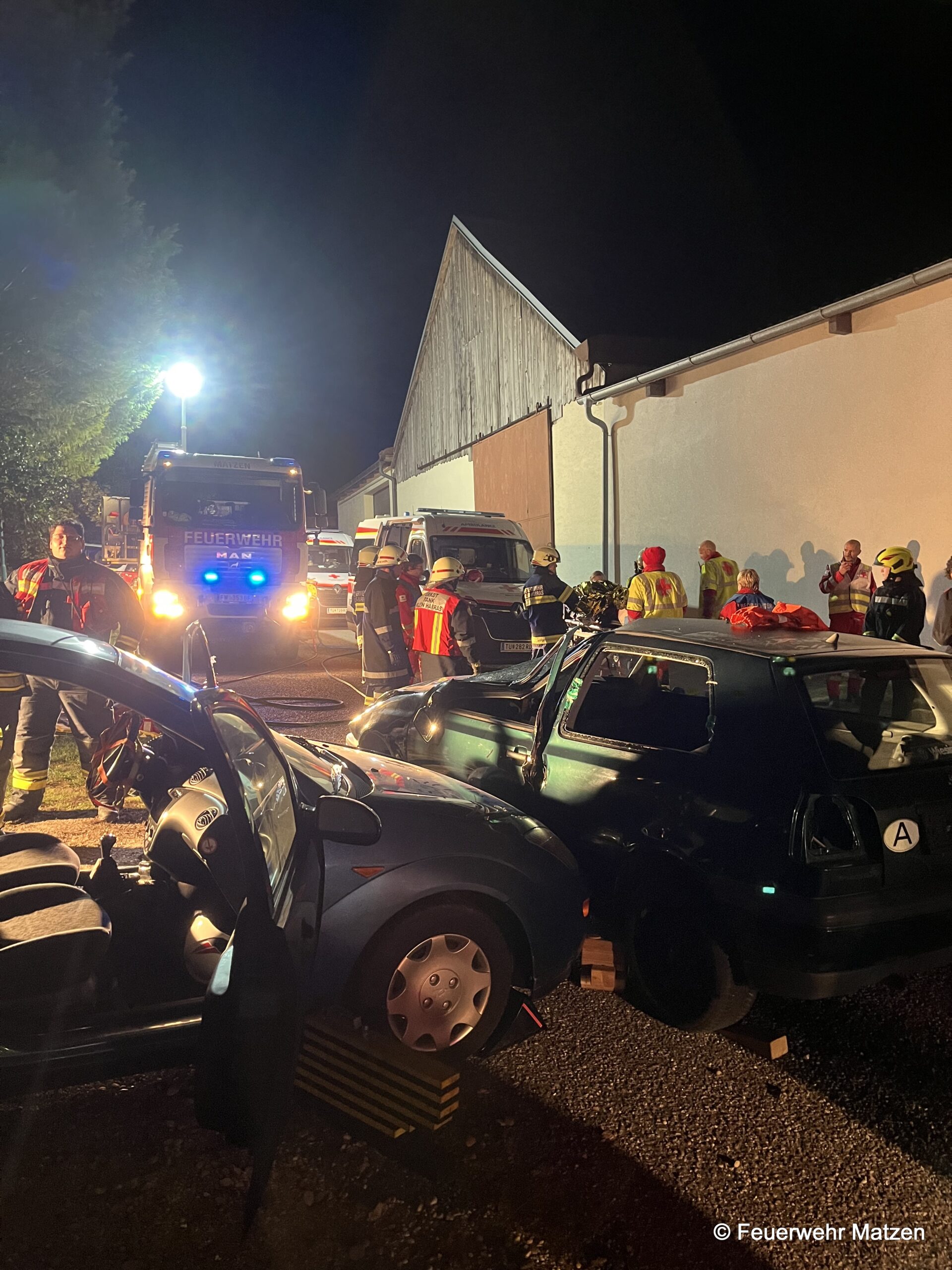 Dort angekommen stellte sich die Lage wie folgt da. 2 PKW’s kollidierten in einem Kreuzungsbereich. Insgesamt waren 3 verletzte Personen in den Autos eingeklemmt. Die Feuerwehr Raggendorf war bereits vor Ort und kümmerten sich um den Fahrer im Polo. Das Rote Kreuz war ebenfalls schon vor Ort und starteten bereits mit der Versorgung der Verletzten.