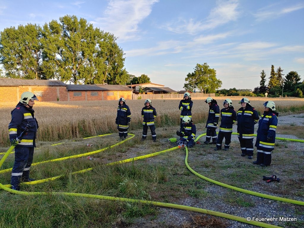 In der Monatsübung im Juli wurden die wasserführenden Armaturen besprochen und jeder Teilnehmer konnte jedes Gerät bedienen. Neben C- und B-Rohr, wurden das Hydroschild sowie ein selbstgebauter Wasserwerfer trainiert. Auch unser mobiler Wasserwerfer kam zum Einsatz. Um die Schulungseinheit etwas aufzulockern, konnte das richtige Verhalten im Innenangriff bei einem Flash-Over vertieft werden.
