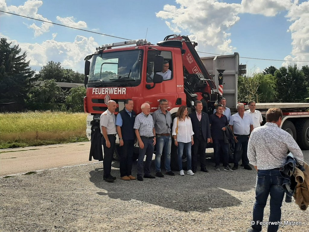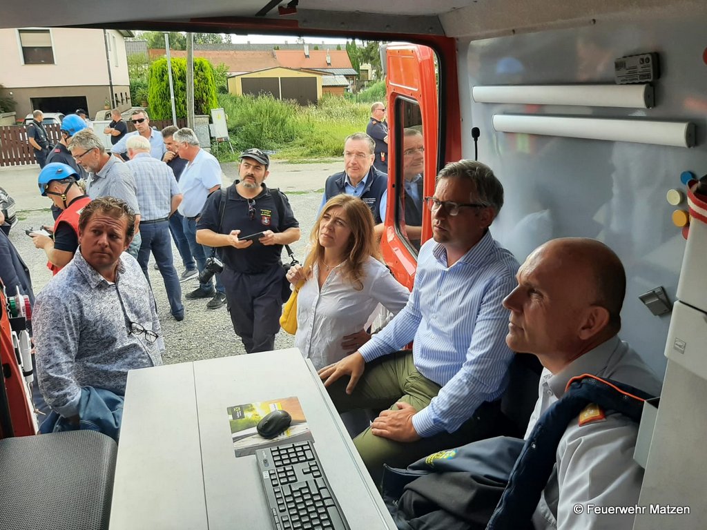 Neben ca. 20 Kameradinnen und Kameraden aus anderen Feuerwehren des Bezirkes konnte bei dieser Gelegenheit auch ein Team der Feuerwehr Matzen für 2 Stunden das neue ELF samt Drohne des BFK Gänserndorf präsentieren. Staatssekretär Dr. Brunner war sichtlich angetan vom Können der Drohnenpiloten der Feuerwehr Matzen sowie den vielfältigen Einsatzmöglichkeiten dieses fliegenden „Helfers“ der Feuerwehren im Bezirk.