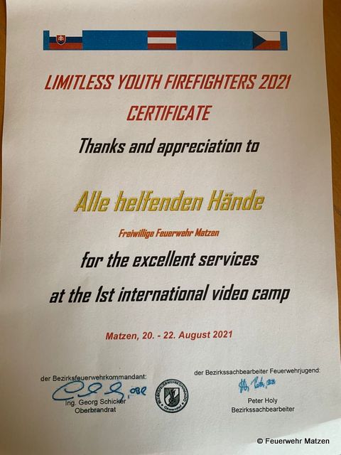 Gemeinsam mit zwei anderen Jugendfeuerwehren aus dem Bezirk Gänserndorf und befreundeten Jugendfeuerwehren aus der Tschechischen Republik und aus der Slowakei wurde das erste „grenzüberschreitende digitale Jugendfeuerwehrlager“ vom 20.08. bis zum 22.08.2021 abgehalten. Wobei streng auf die Einhaltung der Corona-Bestimmungen geachtet wurde.