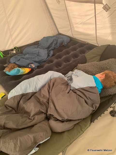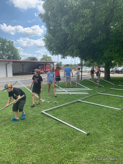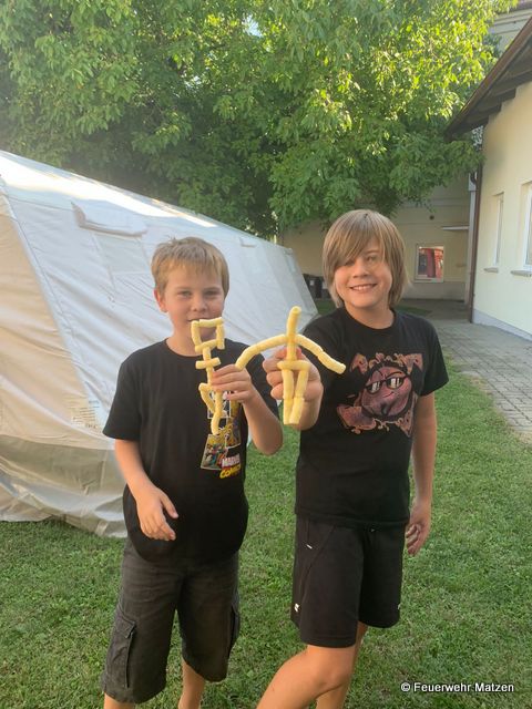 Um nicht ganz auf den Flair eines Zeltlagers verzichten zu müssen, wurde auf dem Gelände der Feuerwehr Matzen bis Sonntag ein Zelt für die Mitglieder unserer Feuerwehrjugend errichtet. Rund um die Uhr wurden sie dabei von unseren JugendbetreuerInnen Sabrina Eichinger und Christoph Rennthaler versorgt und betreut.