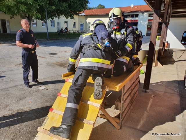 Seit einigen Wochen üben die Mitglieder der Feuerwehr Matzen für die Ausbildungsprüfung Atemschutz. Auch heute haben wieder zahlreiche Kameradinnen und Kameraden ihre spärliche Freizeit für die Vorbereitung auf die Ausbildungsprüfung geopfert. Diese Prüfung gliedert sich in vier Stationen, welche alle innerhalb eines straffen Zeitrahmens positiv abgeschlossen werden müssen. Dieses Jahr treten drei Atemschutztrupps aus Matzen zur Prüfung an. Die Stationen welche absolviert werden müssen sind: