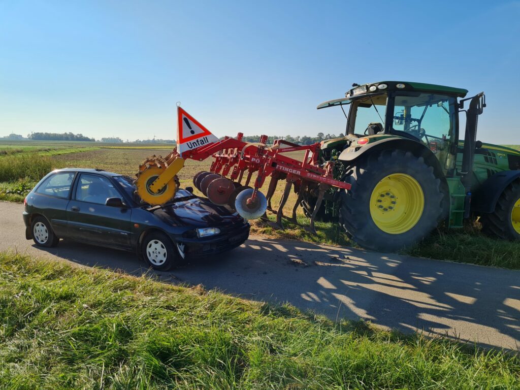 Im Bereich der L 3159 ereignete sich ein Unfall zwischen einem PKW und einem Traktor samt Grubber. Ein nachkommender PKW mit 2 Insassen, darunter einem Kind, kam im Zuge des Ausweichmanövers ebenfalls von der Fahrbahn ab.