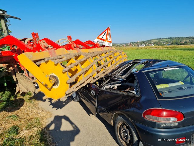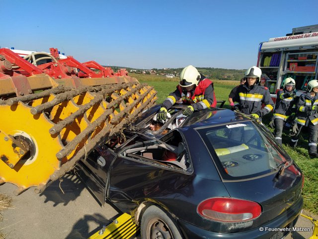 Als erschwerend kam bei dieser Situation dazu, dass das Unfallfahrzeug unter dem Grubber des Traktors zum Stehen kam und somit die Menschenrettung wesentlich erschwert wurde.