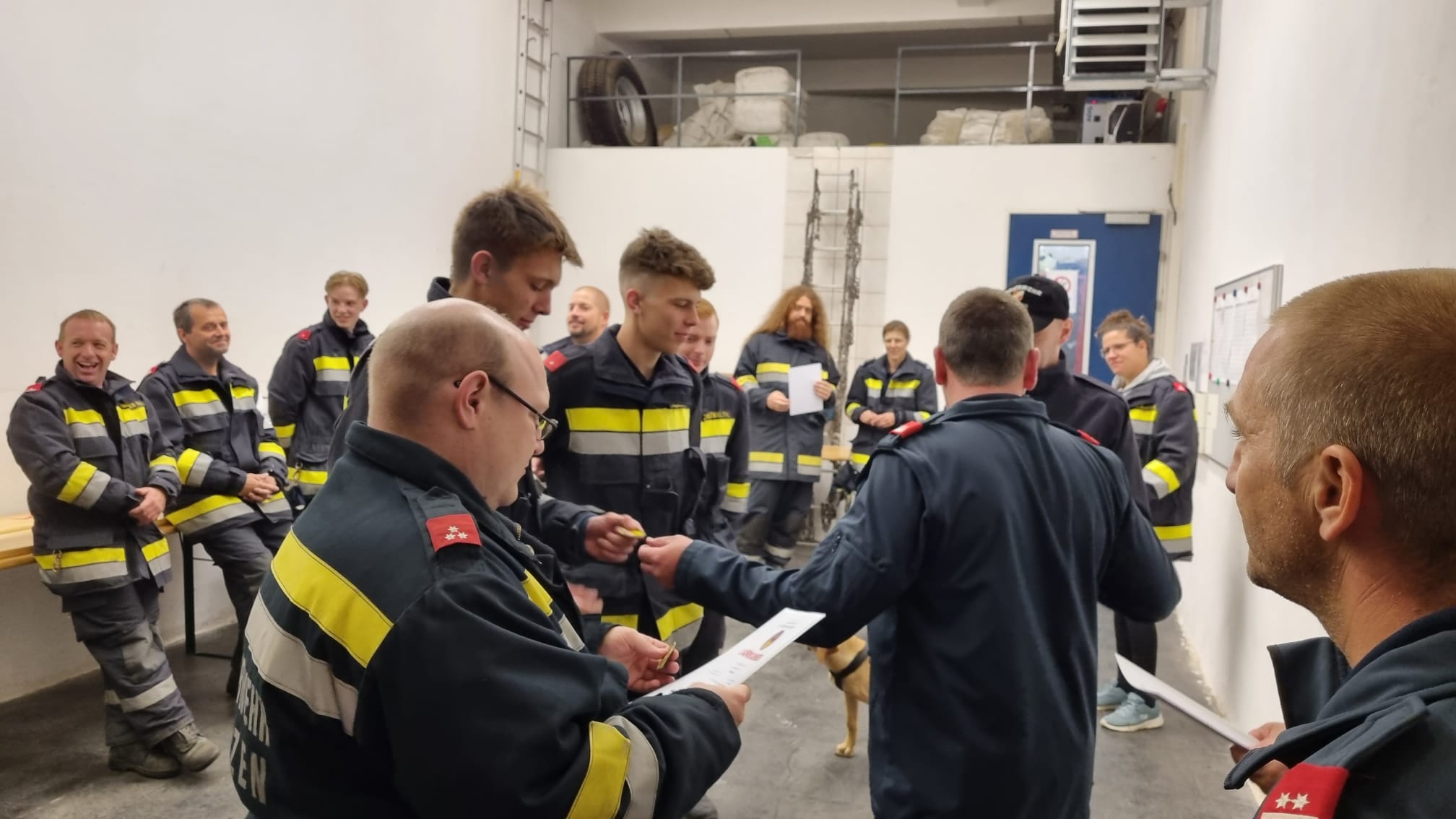 Alle Gruppen konnten die Ausbildungsprüfung erfolgreich abschließen und ihre Abzeichen stolz von Abschnittsfeuerwehrkommandant BR Reinhard Schuller in Empfang nehmen, darunter auch die erste Kameradin in der FF Matzen, Tina Kopp, die die APAS in Bronze absolvierte.
