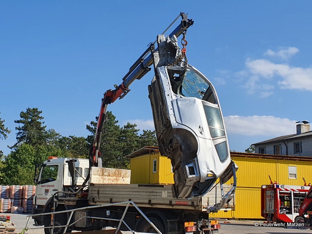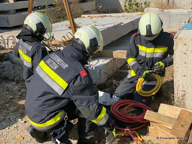 Einerseits wurde die Rettung einer unter einer Betondecke eingeklemmten Person (Puppe) mittels pneumatischer Hebekissen und andererseits die Rettung einer erwachsenen Person und eines Kindes aus einem verunfallten PKW, wobei ebenfalls wieder die Hebekissen zum Einsatz kamen, beübt.