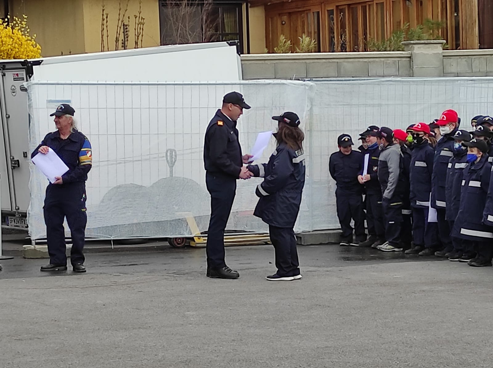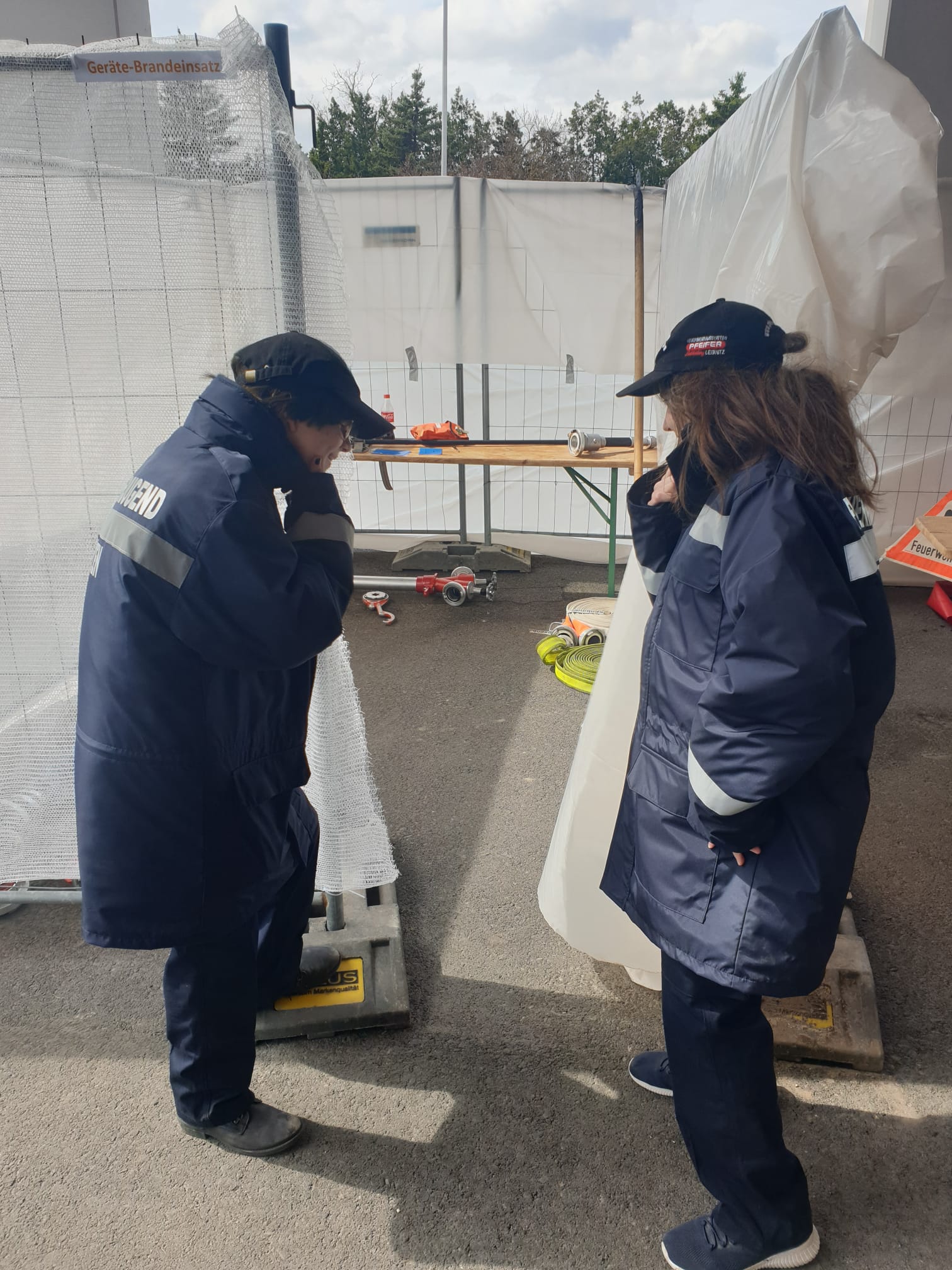 Die älteren Feuerwehrjugendmitglieder, allesamt übrigens Mädchen, die begeistert ihrer Tätigkeit in der Feuerwehrjugend nachgehen, stellten sich in der Kategorie “Silber” den Fragen der Prüfer. Knoten, Dienstgrade, theoretische Fragen auf einem Testblatt, Geräte für den Brandeinsatz und die technische Hilfeleistung sowie diverse Kleinlöschgeräte mussten richtig erkannt bzw. richtig beantwortet werden.