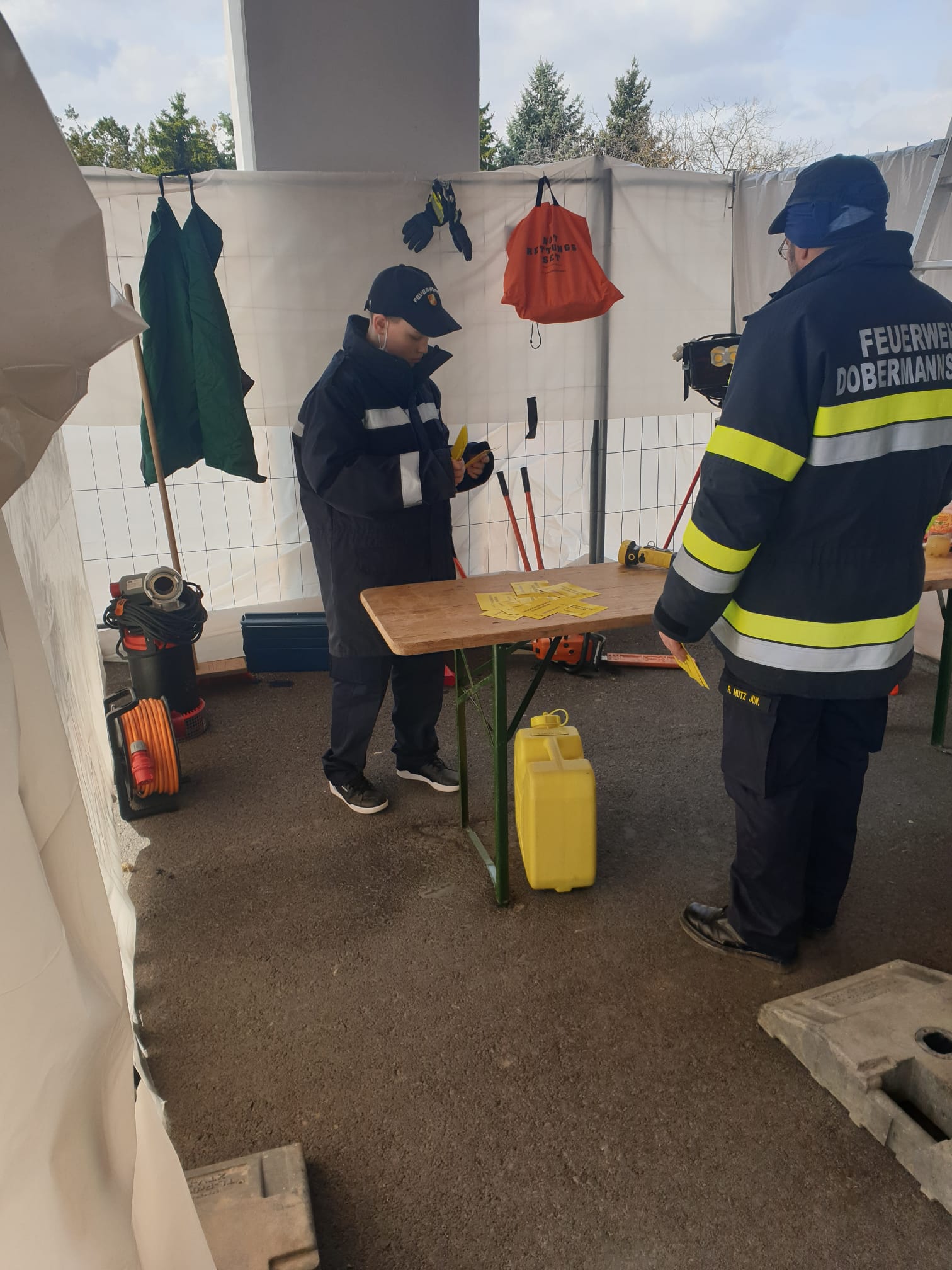 So mussten unsere jüngsten Feuerwehrmitglieder einige Geräte welche auf Kärtchen dargestellt waren, erkennen, die richtigen Verhaltensweisen in verschieden Situationen anhand von Bildern erklären, die Notruf- und Zivilschutzalarmsignale erkennen und Fragen auf einem Testblatt richtig beantworten.