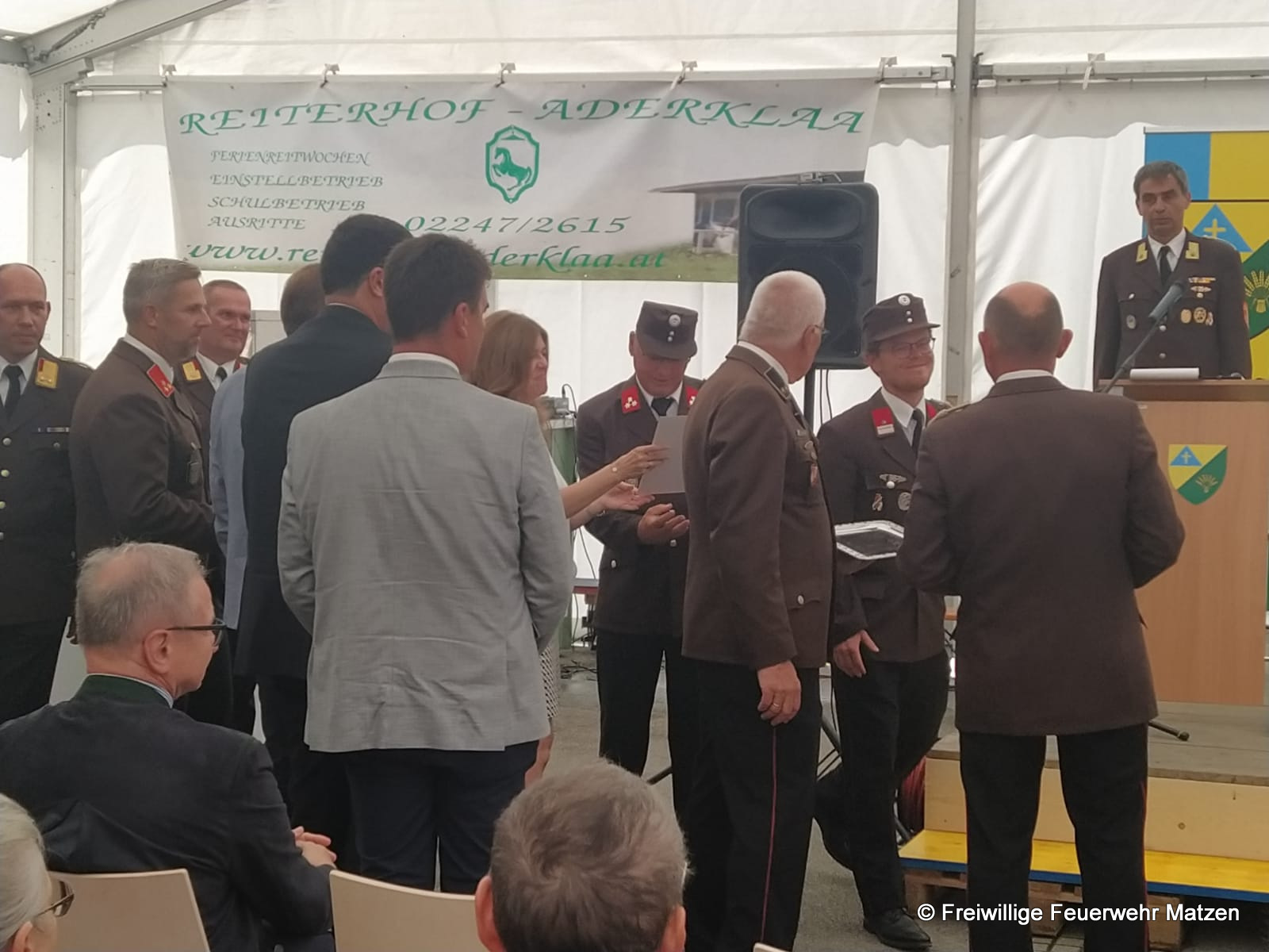 Die FF Matzen wurde im Jahr 1880 gegründet und feierte 2020 ihr 140-jähriges Bestehen. Aufgrund der COVID-19 Pandemie in den letzten beiden Jahren hat kein Abschnittsfeuerwehrtag im Abschnitt Gänserndorf stattgefunden und wurde am 137. Abschnittsfeuerwehrtag in Aderklaa deshalb die Ehrung für die FF Matzen nachgeholt.
