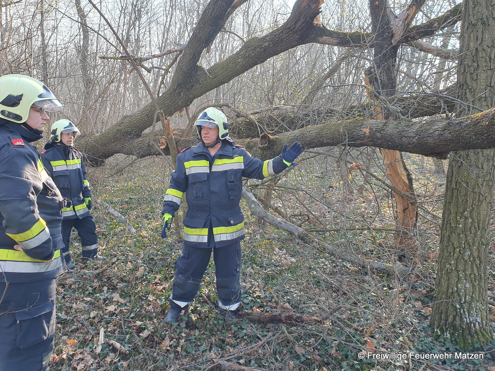Nach zwei Stunden hatten alle Teilnehmer ihr Wissen aufgefrischt und sind nun gerüstet für den nächsten Sturmschaden. Besonderer Dank gebührt dabei dem Bürgermeister der Marktgemeinde Matzen, welche die Möglichkeit zur Übung im Matzner Wald zur Verfügung stellte sowie unserem Übungskoordinator und Ausbildner Alexander Maresch, der sein Wissen sehr praxisnah weitergegeben hat.
