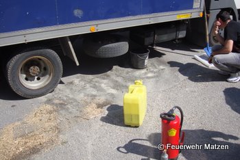 Aus einem Klein-Lkw trat Diesel aus dem Tank aus. Sofort wurde die Einsatzstelle abgesichert und eine Umleitung eingerichtet.