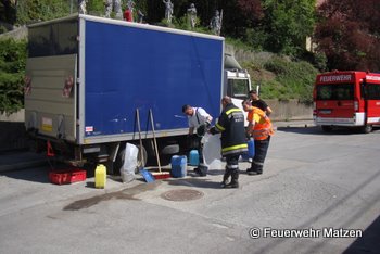 Am 29.April 2010 heulten um 11:08 in Matzen die Sirenen. Die Freiwillige Feuerwehr Matzen wurde zu einem Schadstoffeinsatz in der Schlossstraße alarmiert.