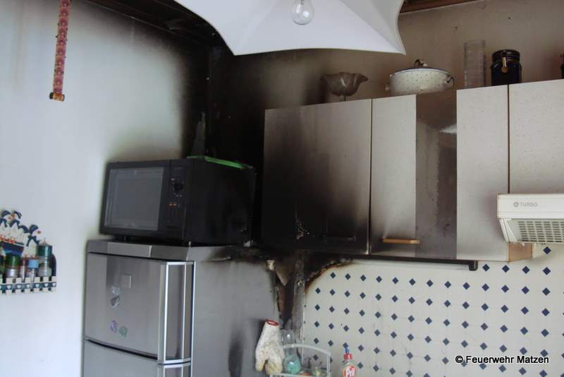 An der Einsatzstelle angekommen stellte sich nach der Erkundung durch Feuerwehrkommandant HBI Manfred Neubauer heraus, dass der Hauseigentümer den Brand in der Küche mittels Nasslöscher selber ablöschen konnte. Nach der Kontrolle durch den Atemschutztrupp und des Einsatzleiters wurde „Brand Aus“ gegeben, die mitalarmierten Nachbarfeuerwehren storniert und die Einsatzkräfte rückten wieder ins Zeughaus ein.