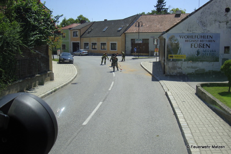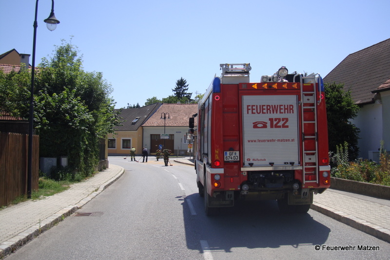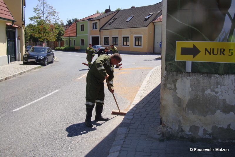 Am 10.07.2011 wurde die Feuerwehr Matzen per SMS-Alarm zu einer Technischen Hilfeleitung alarmiert. Auf der Kreuzung Hauptstrasse # Spannbergerstrasse verlor ein Landwirt Saatgut. Die Feuerwehr Matzen rückte mit dem Rüstlöschfahrzeug und 5 Mann zum Einsatzort aus. Rund 30 Minuten reinigten die Florianijünger die verschmutzten Verkehrswege. Der Verkehr wurde während den Arbeiten einspurig an der Einsatzstelle vorbeigelotst. Um 14:30 konnte die Einsatzbereitschaft wieder hergestellt werden.