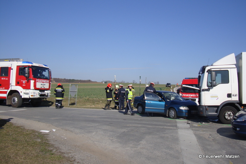 Am 20. März heulten in Matzen um 9:13 die Sirenen. Die Freiwillige Feuerwehr Matzen wurde mittels Sirene und SMS-Alarm zu einem Verkehrsunfall auf der Kreuzung L3159#L3061 alarmiert.