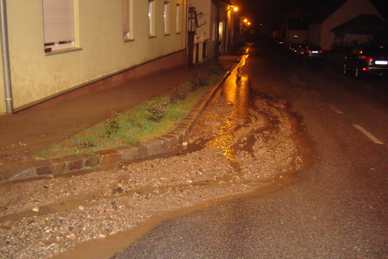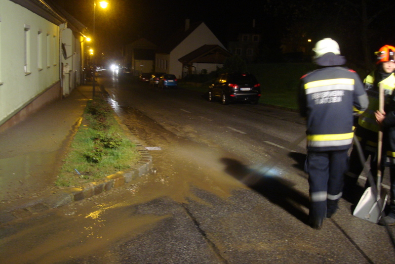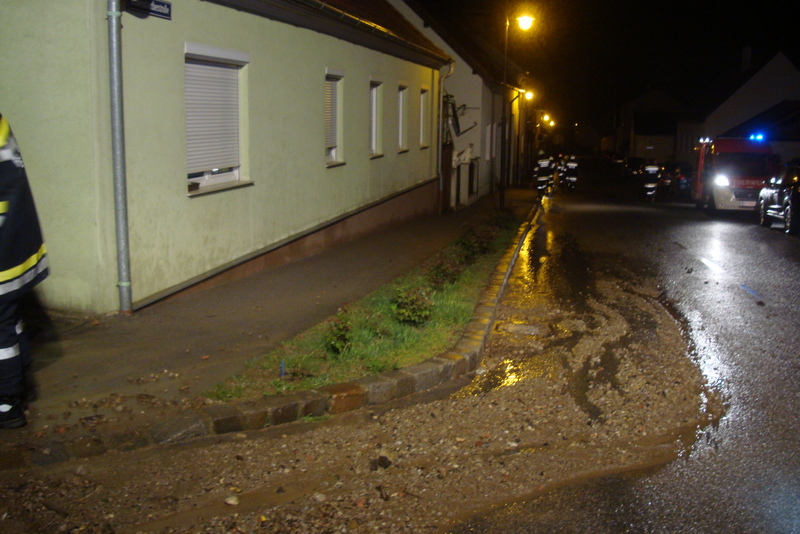 Durch die Regenfälle wurde ein Feldweg ausgewasche und verunreinigte in Folge eine Gemeindestraße. 19 Mann der ortsansässigen Feuerwehr reinigten mittels Schaufeln und Hochdruckrohr das verstopfte Einlaufgitter und die Straße. Nach der Kontrolle der Kanaleinläufe und der Begutachtung durch die Bürgermeisterin konnten die Einsatzkräfte nach rund 1 Stunde abrücken und die Einsatzbereitschaft wieder herstellen.