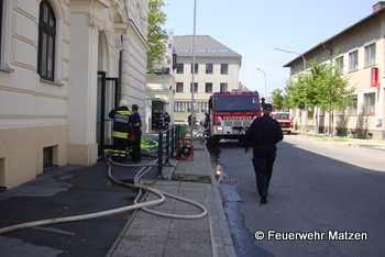 Kurz darauf meldete sich der Atemschutztrupp Matzen beim Einsatzleiter und bekam den Befehl den 1.Stock nach vermissten Personen zu durchsuchen. Gleichzeitig begab sich der ATS-Trupp Strasshof über das zweite Stiegenhaus in den 1.Stock. Nachdem niemand gefunden wurde, konnte der ATS-Trupp Matzen das verrauchte Gebäude verlassen. Am bereits eingerichteten Atemschutzsammelplatz meldete sich der Trupp und stellte die Einsatzbereitschaft wieder her.