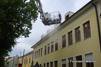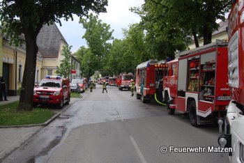 Um kurz nach 14 Uhr schlug ein Rauchmelder in einem Zimmer des KIJUB Matzens an. Ein Mitarbeiter meldete dieses sofort beim Notruf. Aufgrund der Tageszeit wurde über die BAZ Mistelbach Alarmstufe B4 ausgelöst. Da die Drehleiter der Feuerwehr Gänserndorf wegen eines weiteren Einsatzes nicht verfügbar war, wurde die Teleskopmastbühne der Feuerwehr Deutsch-Wagram mitalarmiert.