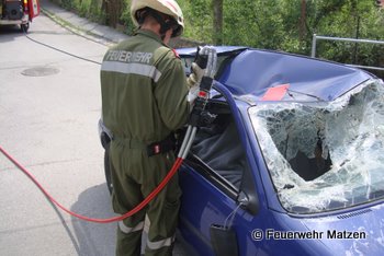 Durch die Rauchentwicklung kam es hinter dem Übungsort zu einem Folgeunfall. Ein Pkw kollidierte mit einer Hausmauer, wobei die beiden Insassen eingeklemmt wurden. Die Feuerwehr Raggendorf wurde mit der Menschenrettung beauftragt.