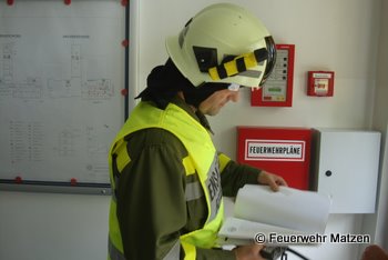 Unverzüglich rückten die Florianijünger zum Übungsort aus. Die Feuerwehr Matzen traf nur wenige Minuten nach dem Alarm am KIJUB Matzen ein. Sofort machte sich Übungsleiter LM Rennthaler Roman auf den Weg, die Brandmeldeanlage auszulesen. Währenddessen rüstete sich ein Atemschutztrupp zur Menschenrettung aus. Nachdem der Brandmelder lokalisiert wurde und die Betreuerinnen am Evakuierungssammelplatz befragt wurden, erteilte der Übungsleitern den Befehl zur Menschenrettung vorzugehen und eine Einsatzleitung aufzubauen.