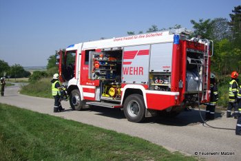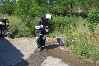 Nach dem Frühstück genossen ein paar die Abkühlung im Pool, andere faulenzten wiederum in der Sonne und unsere Tarockspieler starteten den 2. Versuch. Exakt nach 1 1/2 Partien war es kurz vor dreiviertel 10 wieder so weit : „Schadstoffeinsatz auf der L 19 Richtung Groß Schweinbarth“ zeigten die Displays der Handys. Ein Traktor verlor aus einem undichten Behältnis 51 %ige Schwefelsäure. Unverzüglich wurde die Einsatzstelle abgesichert und der Lenker des Traktors medizinisch erstversorgt. Nachdem das Leck abgedichtet werden konnte, wurde der letzte Einsatz des 24 Stunden Tages beendet.