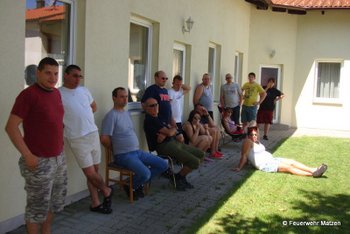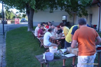 Nach der schweißtreibenden Arbeit bei ca 30 Grad war es dann auch schon Zeit um das Abendessen vorzubereiten. Käsekrainer und Bratwürste mit unzähligen Salaten, Brot und Semmeln wurden gerichtet. Nachdem der Abwasch erledigt wurde setzten sich die Kameraden zum gemeinsamen EM Abend zusammen. Nach und nach wurden diese doch weniger bis alle das Matratzenlager aufsuchten.