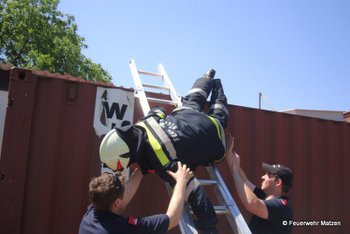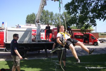 Am 16. Juni 2012 war es dann soweit. Um 13: 00 fanden sich 16 Kameraden im Feuerwehrhaus ein, um 24 Stunden im Kreis der Feuerwehr zu verbringen. Zum Start wurde als erste Station die Möglichkeit geboten, sich vom Hubrettungsgerät der FF Angern abzuseilen. Nach einer kurzen Einweisung seilten sich die Teilnehmer aus einer Höhe von ca 5-6 Metern ab. im Anschluss wurde der Rückzug bzw die Selbstrettung über Leitern erläutert und geprüft..