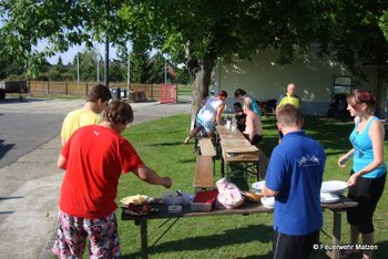 Nun konnten die Teilnehmer die letzten Stunden die Sonne genießen, den fehlenden Schlaf nachholen und auf ereignisreiche 24 Stunden zurückblicken. Die Feuerwehr Matzen bedankt sich bei den involvierten Kameraden, umliegenden Feuerwehren Angern, Raggendorf und Klein Harras für die Ausarbeitung der Einsatzübungen. Ein besonderer Dank gilt an Fr. Doris Zimmer die uns das Frühstück gesponsert und ganz liebevoll gerichtet hat.